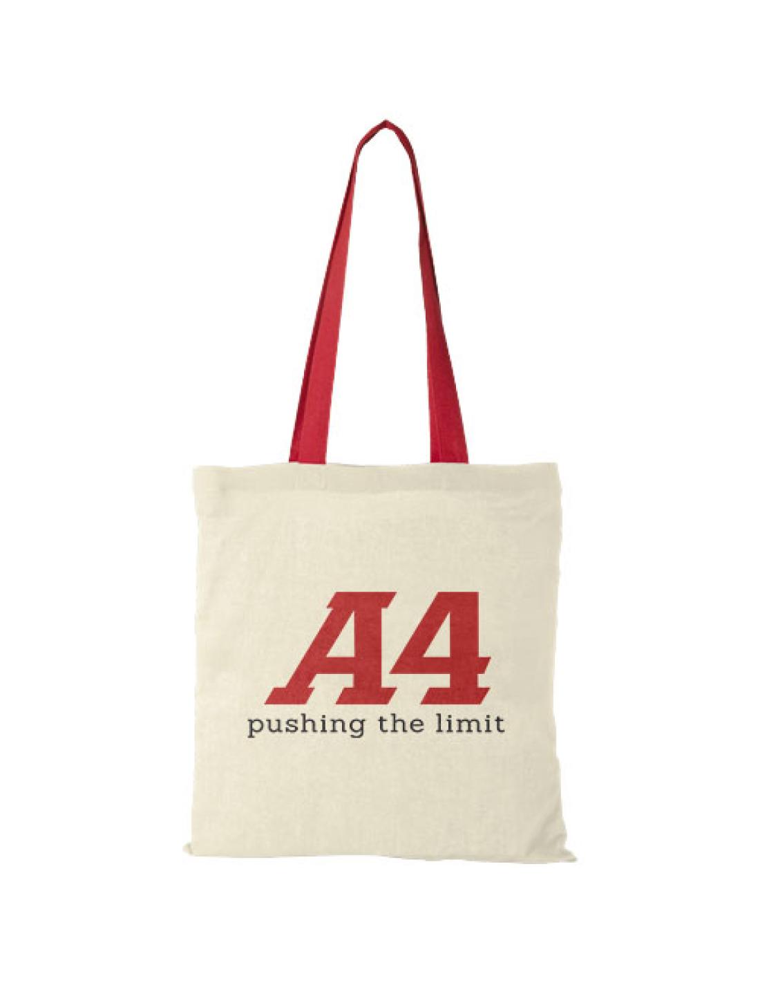 Con sus asas de vivos colores, esta bolsa añadirá un toque de color a cada evento, congreso o festival. La bolsa tote Nevada de algodón de 100 g/m² es una bolsa económica y ligera con un compartimento principal abierto. Con sus 7 litros de capacidad, esta bolsa es perfecta para llevar lo esencial de cada día, desde el teléfono y la cartera hasta el libro o la tableta. Las asas de 30 cm de longitud hacen que sea una bolsa fácil de llevar a todas partes. Fabricada en la India y con certificado OEKO-Tex. Resiste hasta 5 kg de peso.