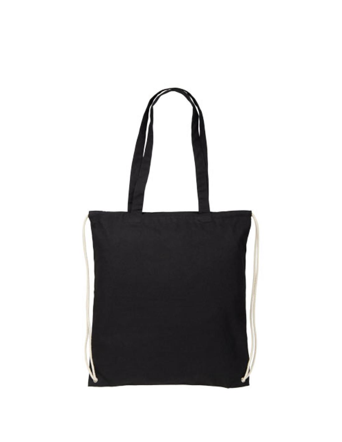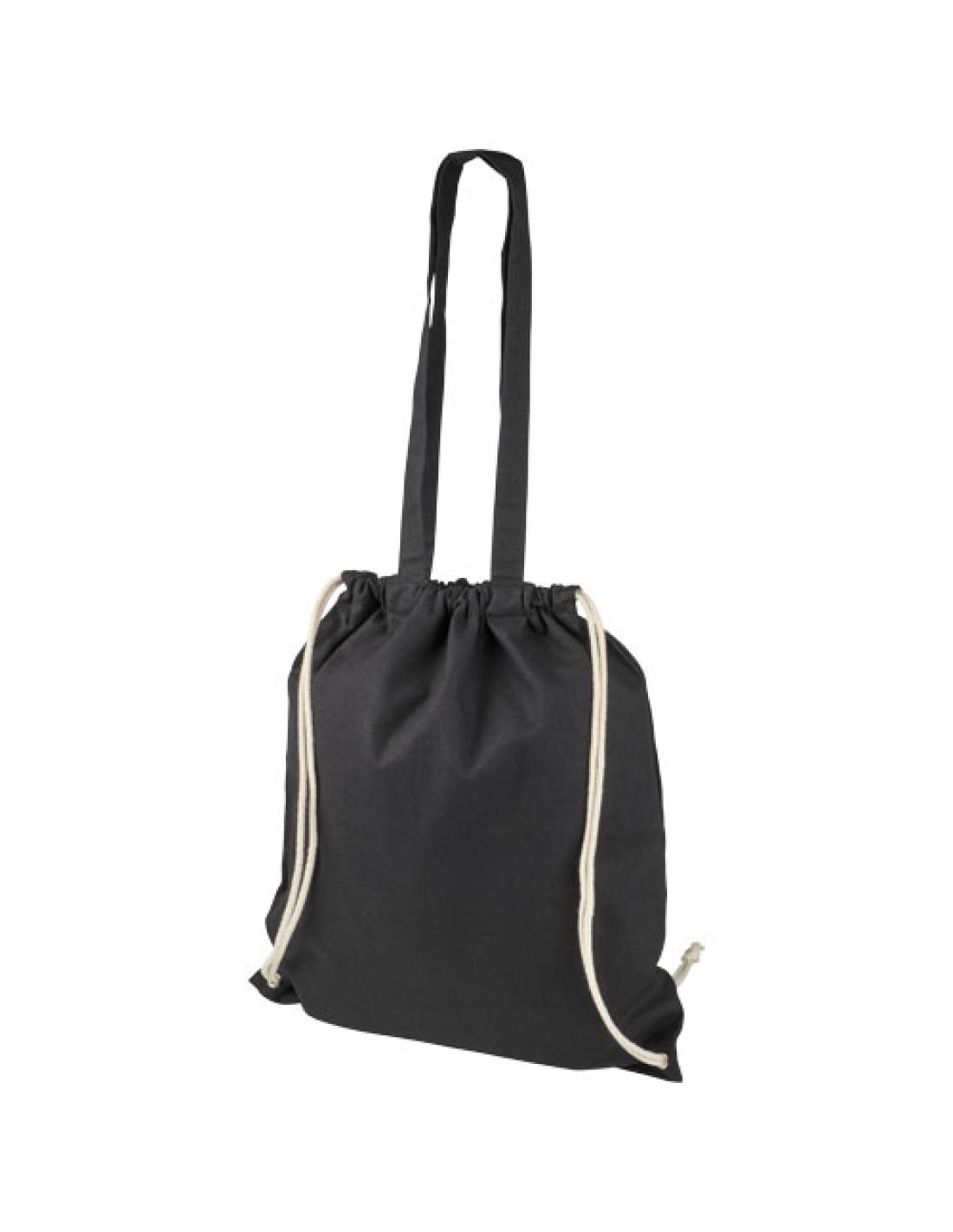 Bolsa de algodón multifuncional con asas largas y cuerda que se puede llevar como bolso o mochila. Gran compartimento principal con cierre de cuerda. Cuenta con dos asas extensibles de 31 cm de longitud. Capacidad: 1,5 l, resistencia para hasta 5 kg.