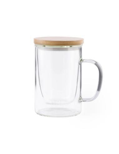 Dos tazas de vidrio de doble pared de 350 ml con posavasos de bambú N10613311