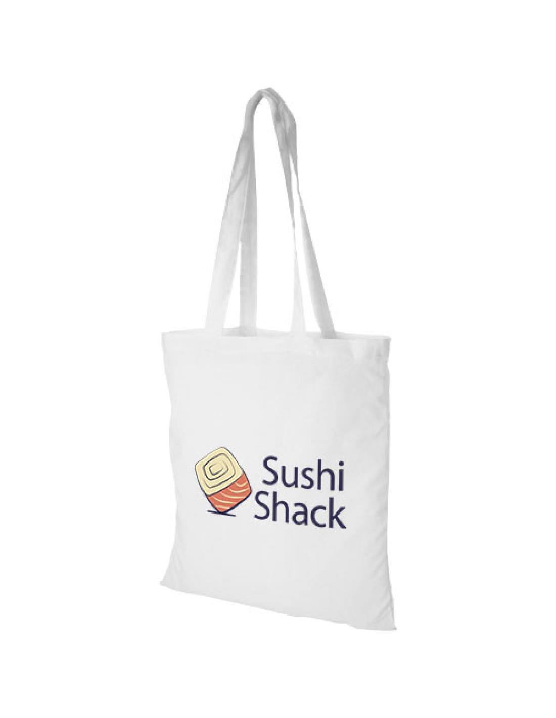 Bolsa de algodón de 180 g/m², resistente y duradera, con un gran compartimento principal y máxima visibilidad para cualquier logotipo. El robusto material de algodón la hace adecuada para transportar artículos más pesados. Las asas tienen 30 cm de longitud, por lo que son lo suficientemente largas como para llevar la bolsa sobre un hombro. Resistencia hasta 5 kg de peso.