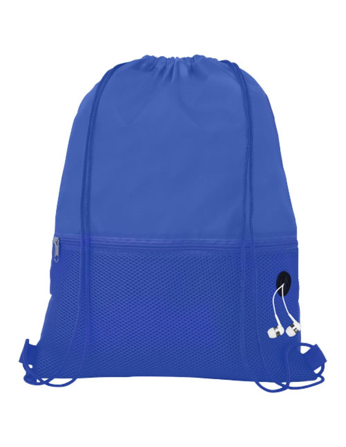 Mochila de cuerdas con compartimento principal con cierre de cuerdas en color a juego. Cuenta con un bolsillo delantero con malla y cremallera y un puerto para auriculares. Resistencia para hasta 5 kg de peso.