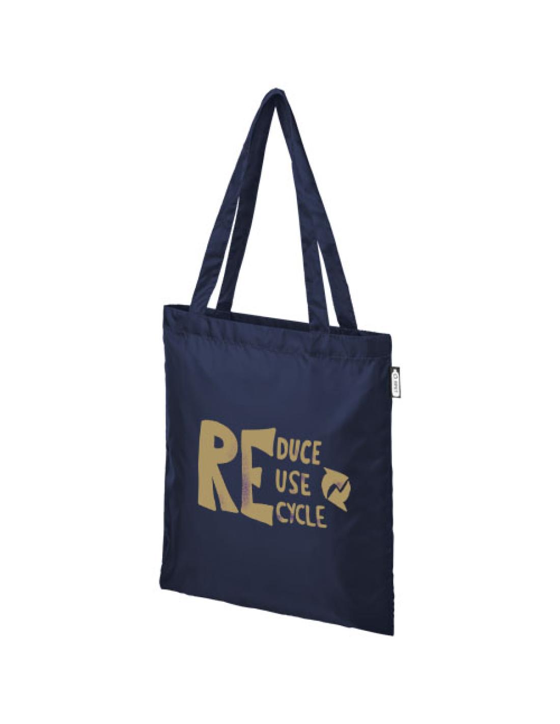 Bolsa duradera hecha de 100 % plástico reciclado que contribuye a la reducción de los residuos plásticos. Dispone de dos asas con una longitud de hasta 27 cm. Resistencia hasta 5 kg de peso.