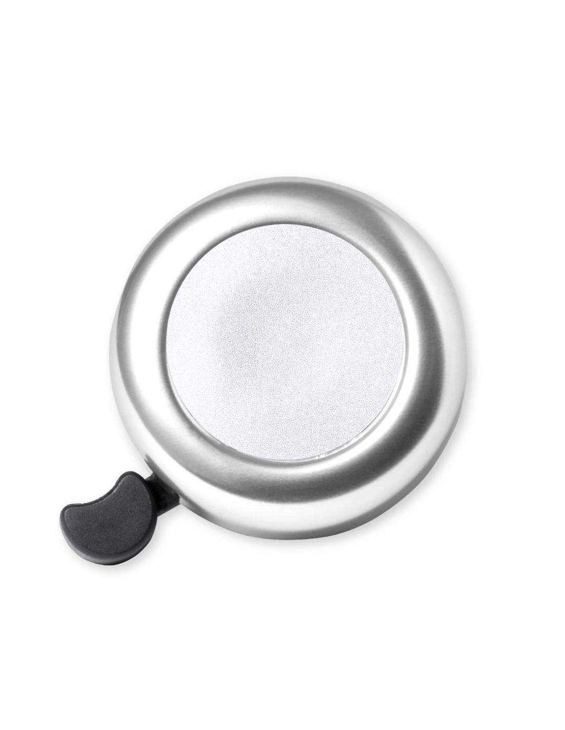 Timbre para bicicleta fabricado en resistente aluminio de acabado brillo. Con ajuste de seguridad para manillar y disponible en variada gama de colores.