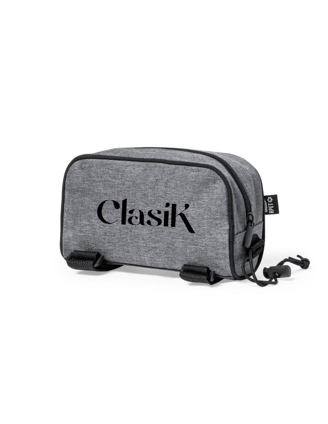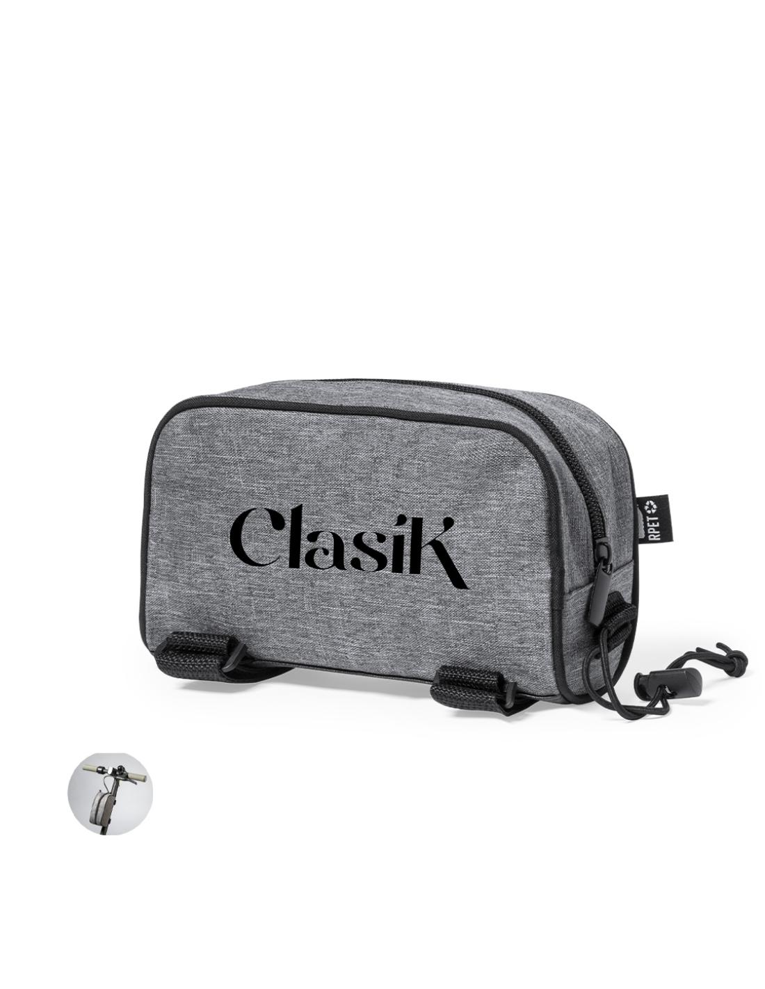 Bolsa para barra de patinete fabricada en resistente 600D RPET. De acabado gris jaspeado.con ribetes de refuerzo y compartimento principal con cierre de cremallera. Incluye doble cinta de ajuste en barra con cierre de velcro y cordón elástico con ajustador. Con distintivo RPET en etiqueta exterior.El material RPET se elabora a partir de plástico reciclado, para así fomentar la reutilización de residuos plásticos y ayudar a la sostenibilidad del planeta.