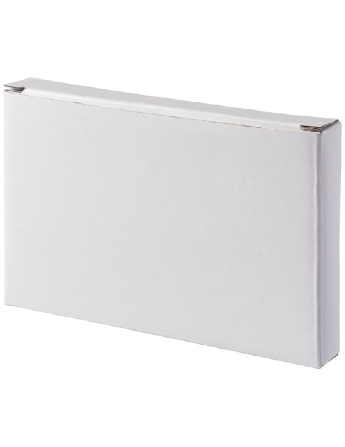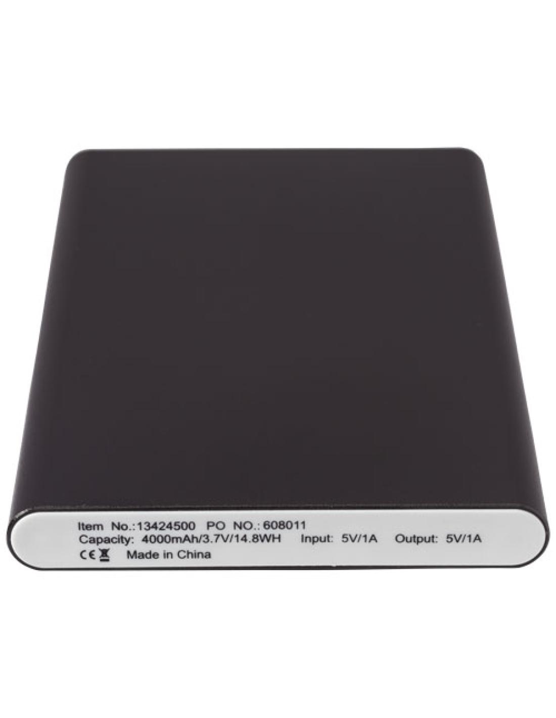 Esta delgada y ligera batería externa de aluminio contiene una batería de polímero de litio y grado A con una capacidad de 4000 mAh. Los indicadores LED se iluminan durante la carga y muestran la carga restante de la batería externa. La entrada de la batería es de 5 V/1 A y la salida es de 5 V/1 A. Incluye un cable de carga de Tipo C a USB A. Presentado en una caja blanca.