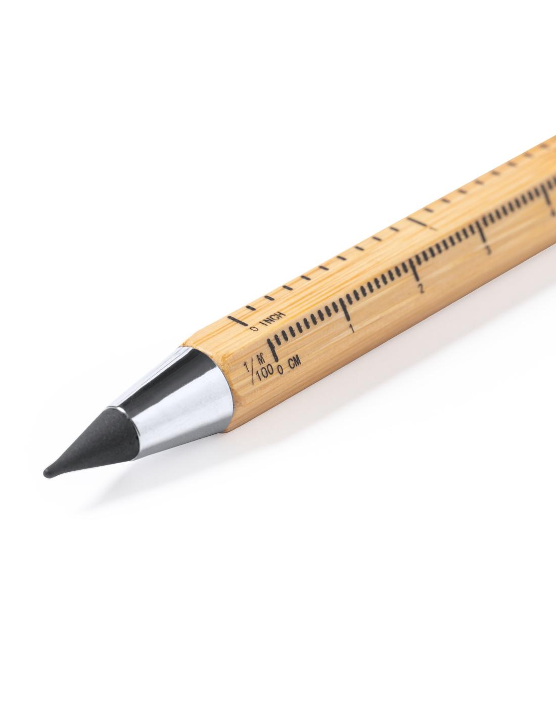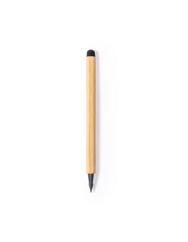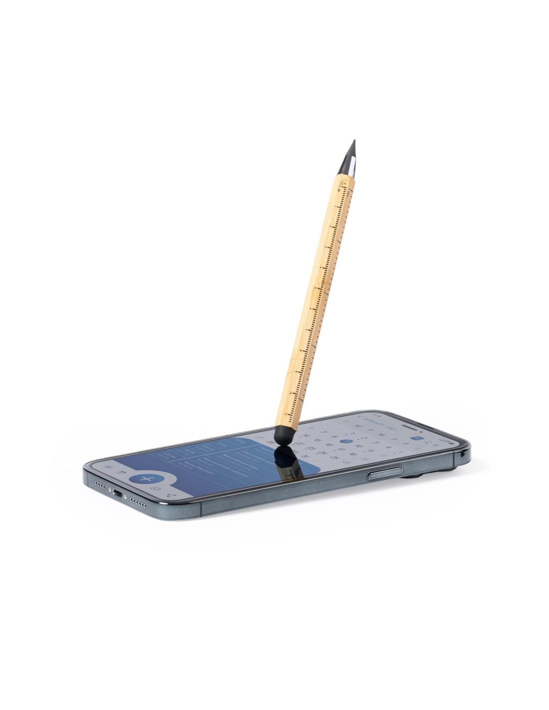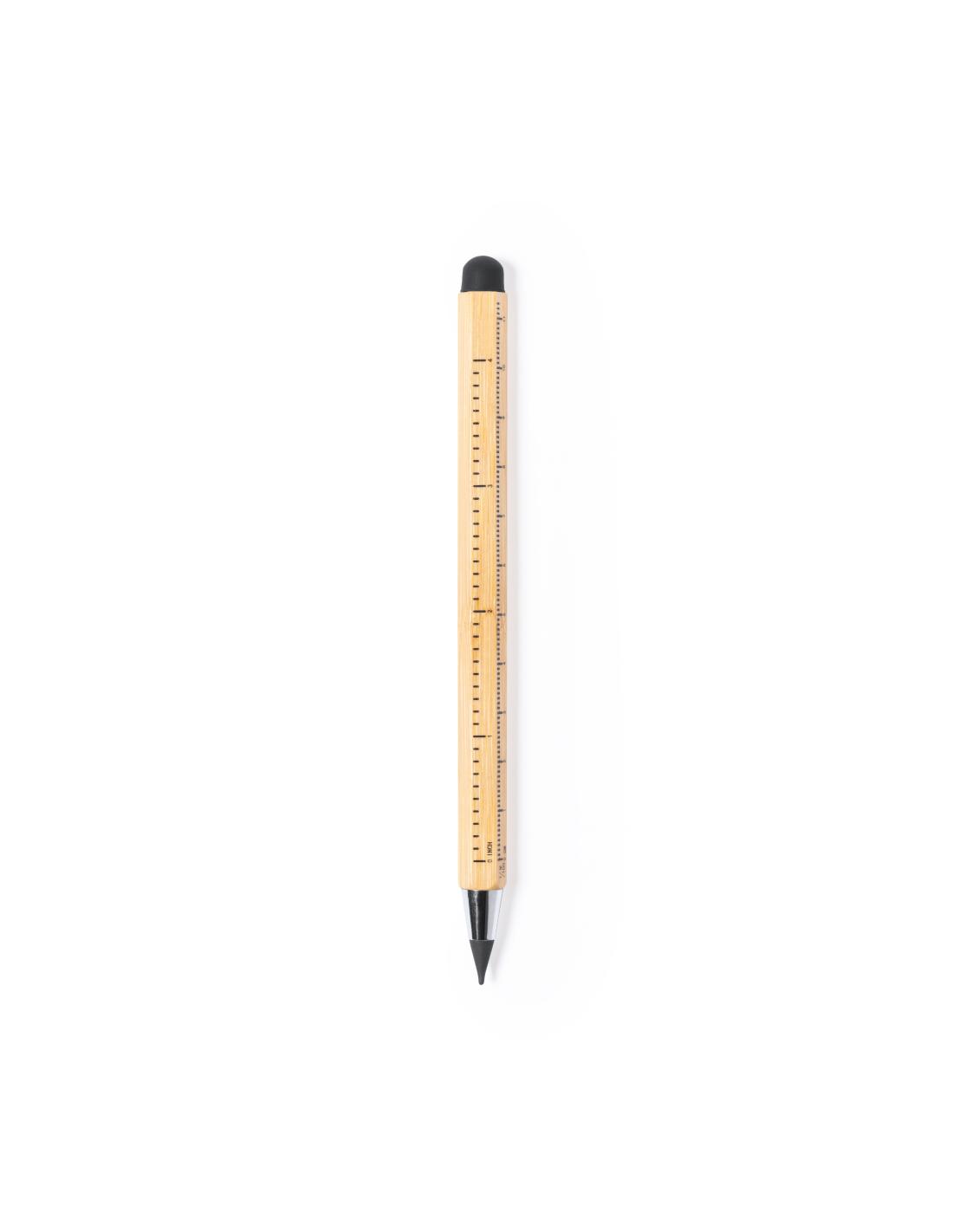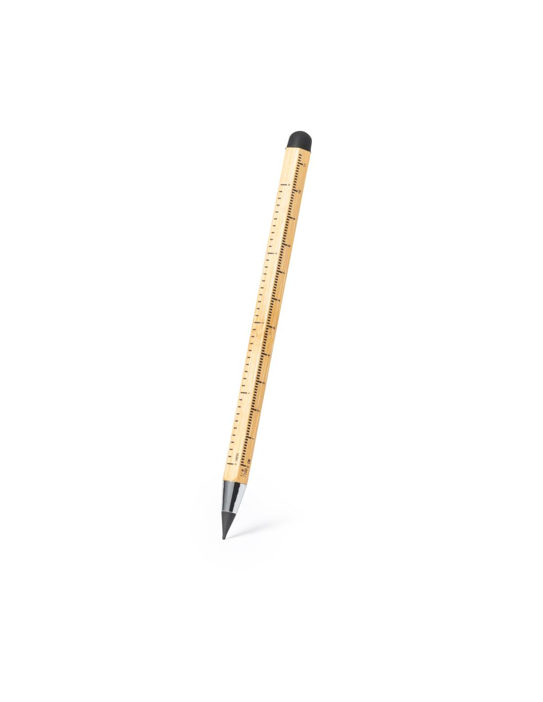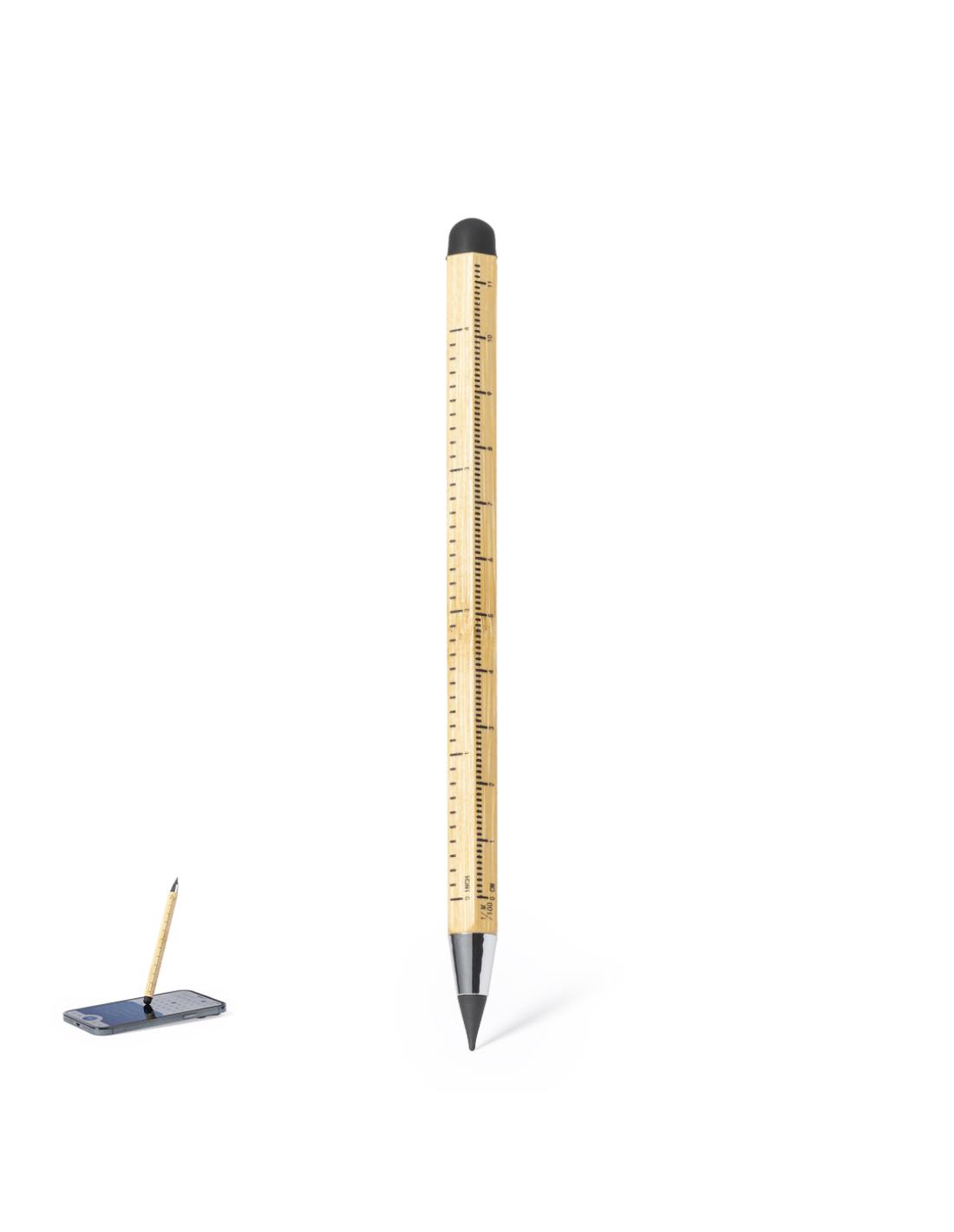 Lápiz eterno multifunción fabricado en bambú. Funciones lápiz, puntero táctil y regla, con medidas en centímetros (11) y pulgadas (4). Reutilizable y con escritura infinita, para así usar siempre el mismo lápiz y no generar residuos.