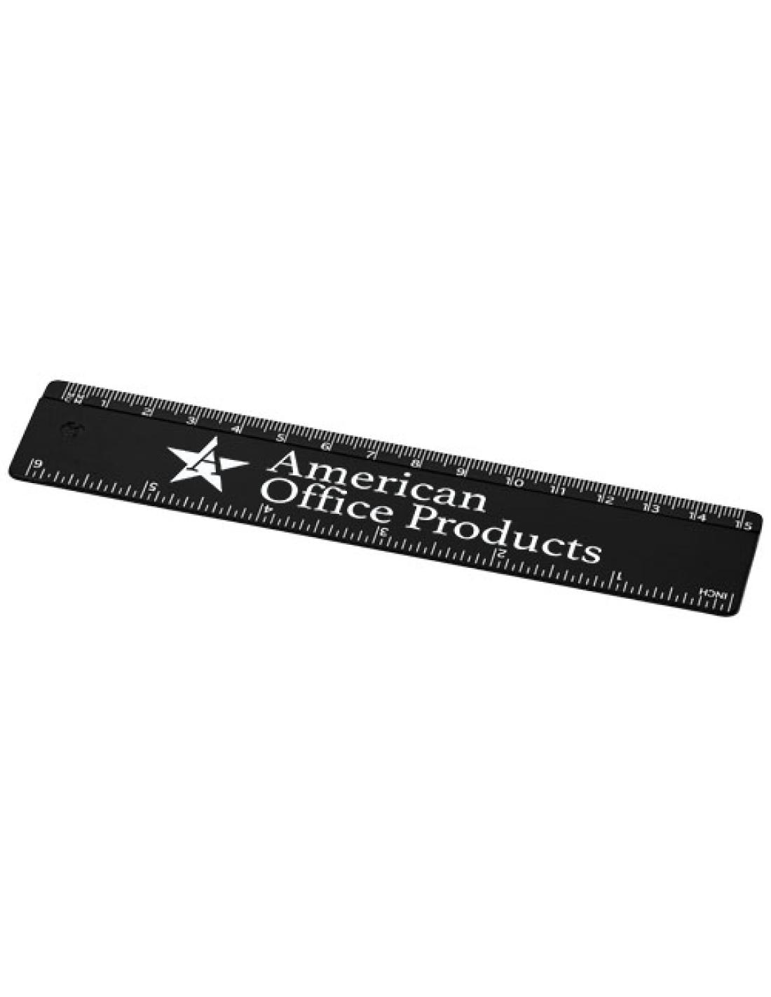 Regla de plástico rígida con marcas en pulgadas y centímetros (sólo cuando sea grabada). Tenga en cuenta que las marcas de la regla se imprimen junto con los logos, las reglas estándar de stock no llevarán marcas.