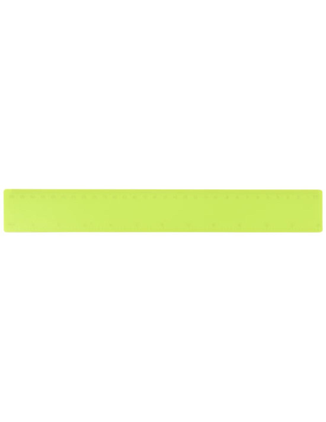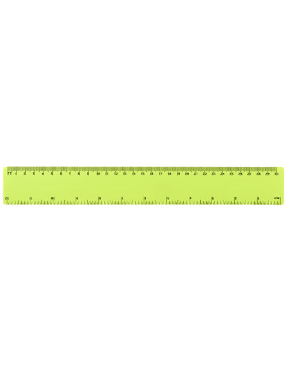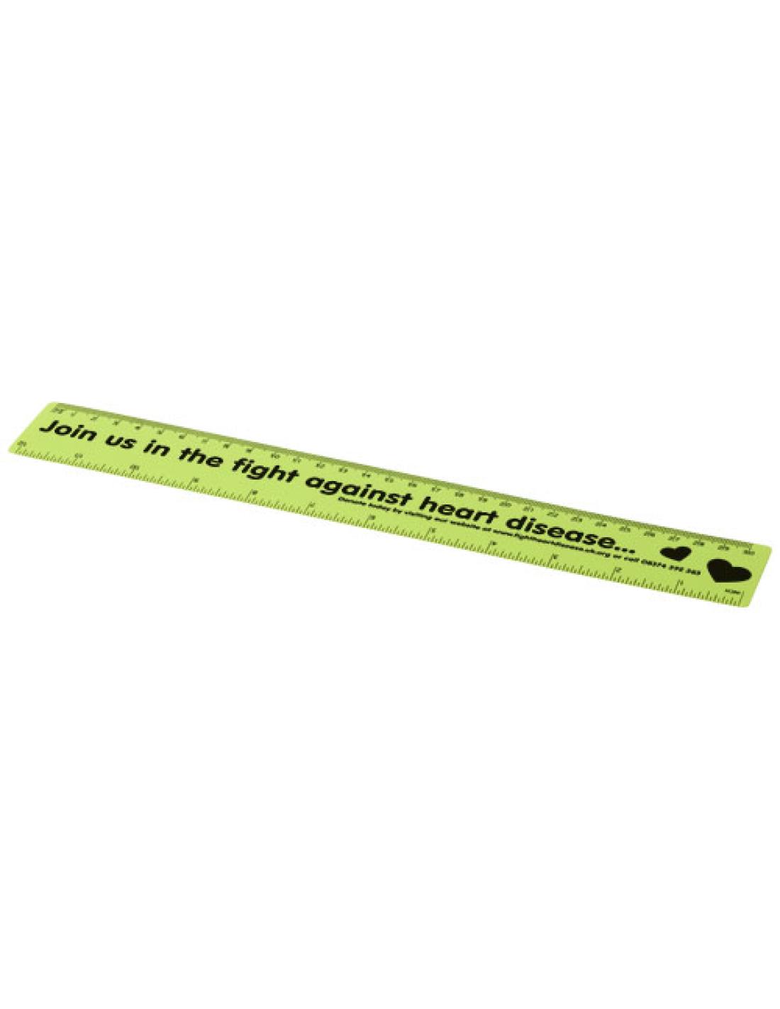 Regla flexible de plástico ligero con marcas tanto en pulgadas como en centímetros. Tenga en cuenta que las marcas de la regla se imprimen junto con los logos, las reglas estándar de stock no llevarán marcas.