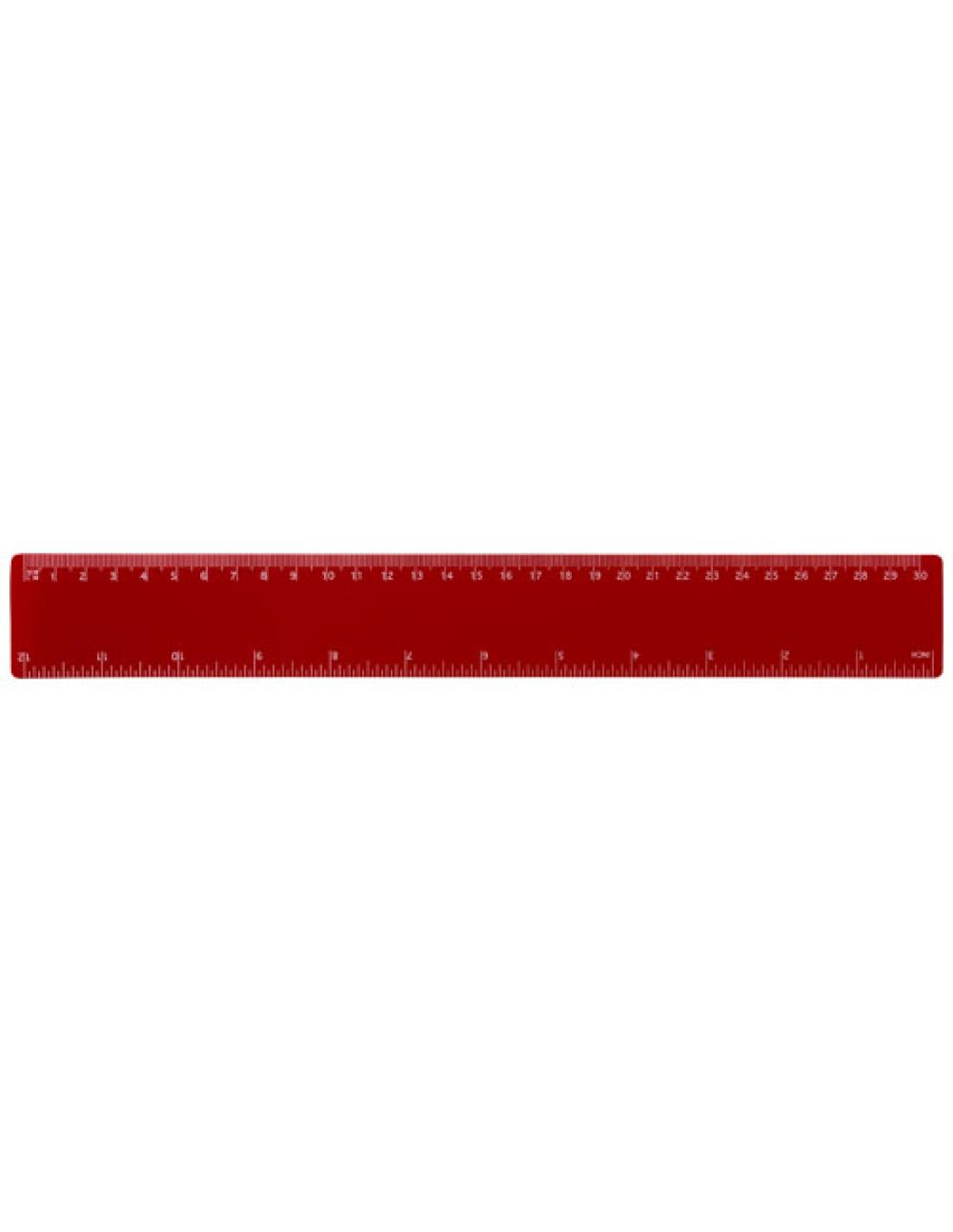 Regla flexible de plástico ligero con marcas tanto en pulgadas como en centímetros. Tenga en cuenta que las marcas de la regla se imprimen junto con los logos, las reglas estándar de stock no llevarán marcas.