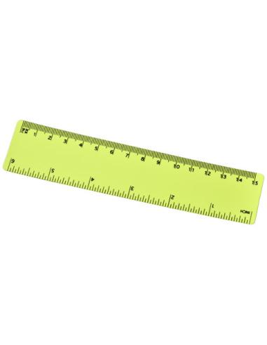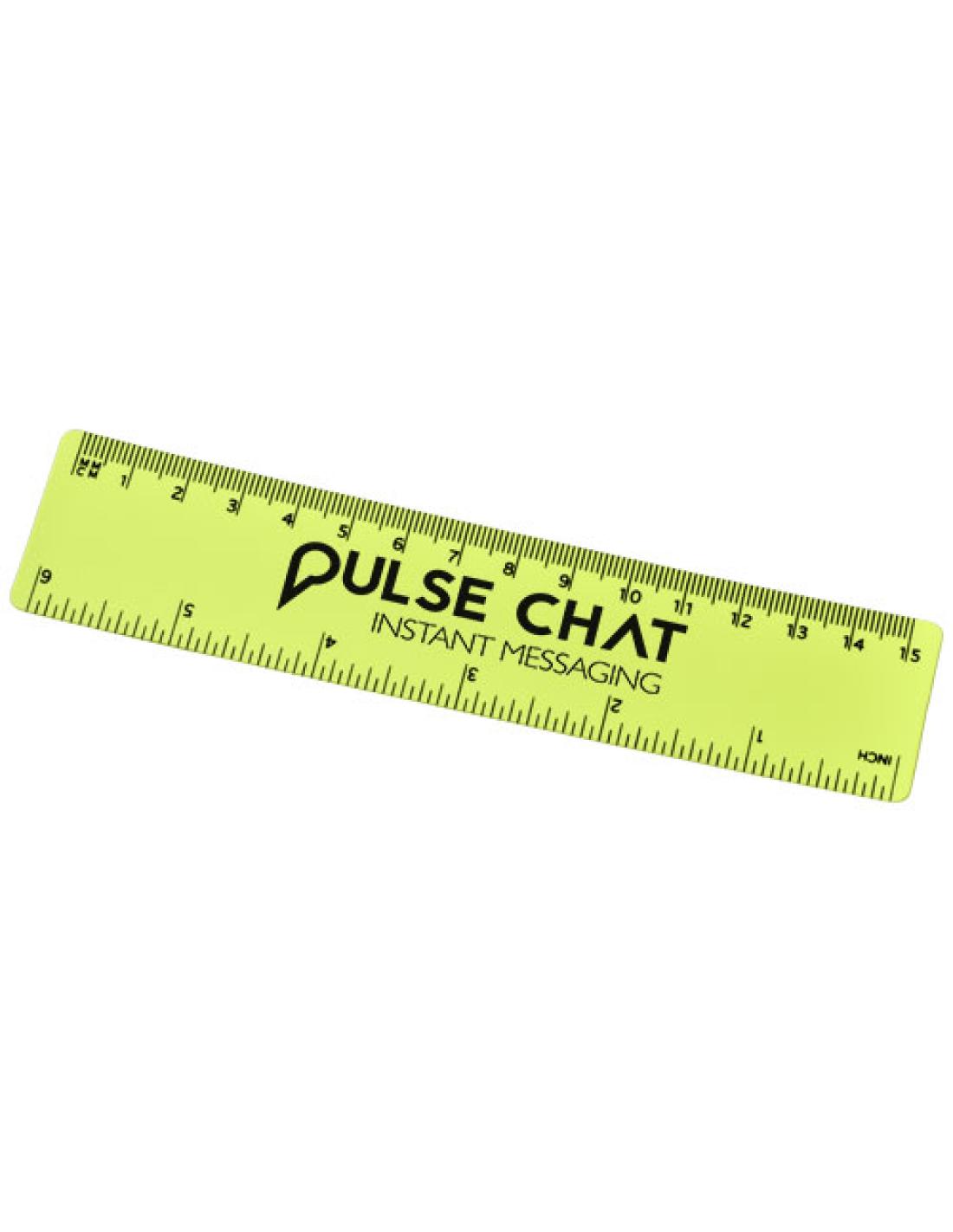 Regla flexible de plástico ligero con marcas tanto en pulgadas como en centímetros. Tenga en cuenta que las marcas de la regla se imprimen junto con los logos, las reglas estándar de stock no llevarán marcas.