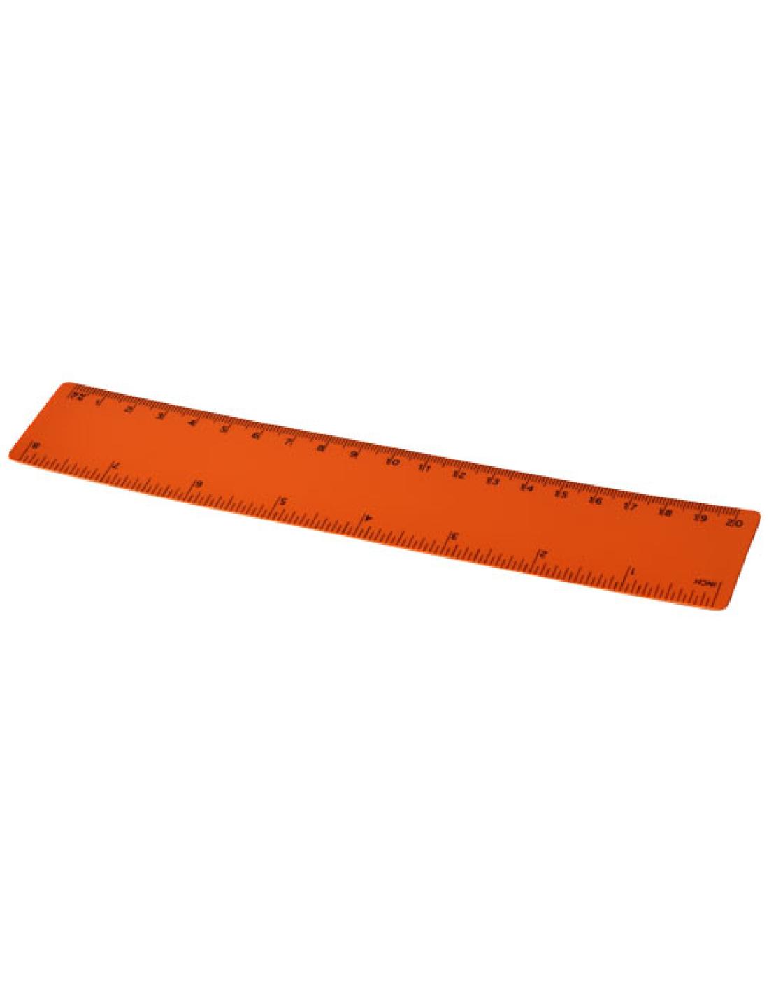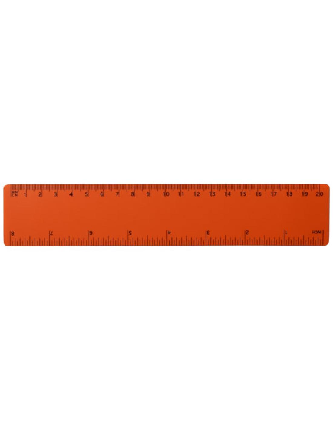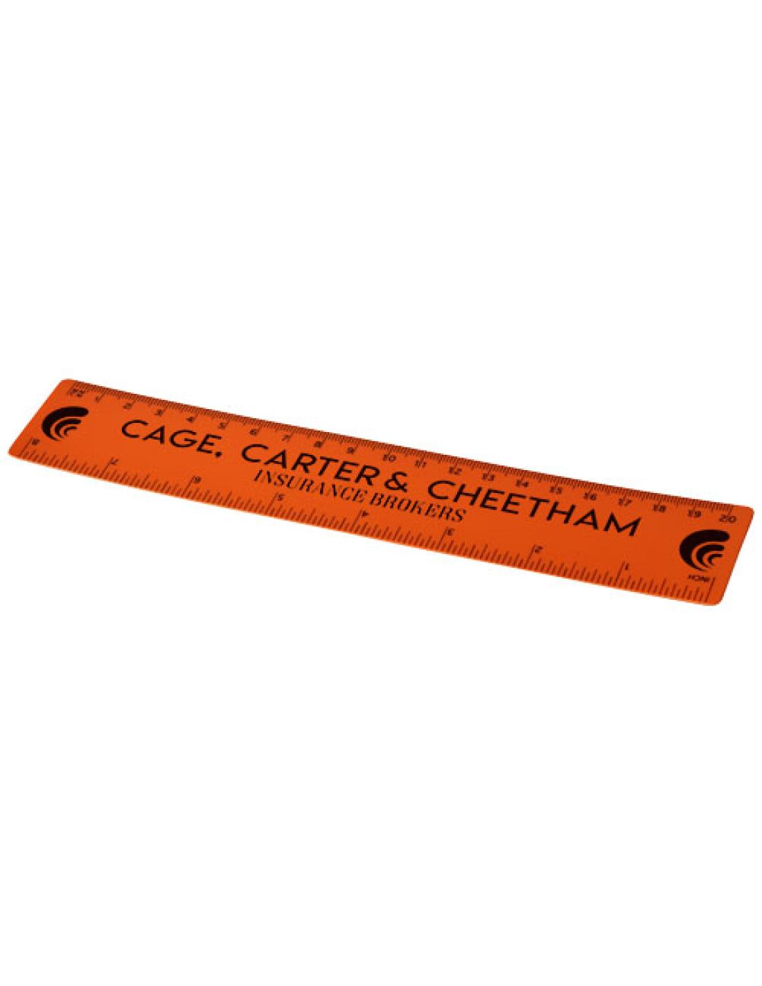 Regla flexible de plástico ligero con marcas tanto en pulgadas como en centímetros. Tenga en cuenta que las marcas de la regla se imprimen junto con los logos, las reglas estándar de stock no llevarán marcas.