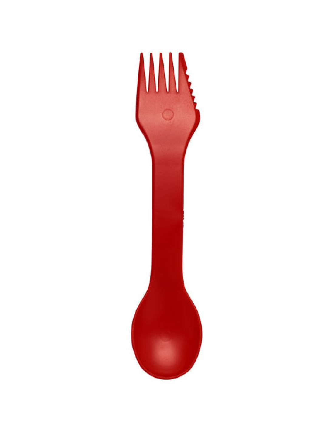 Una combinación de tenedor y cuchara con filo de sierra. Ideal para picnics, campamentos y otras actividades al aire libre. .