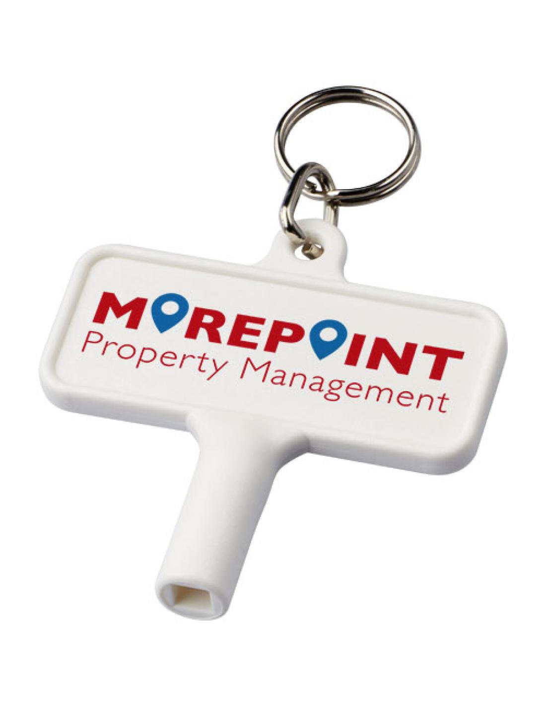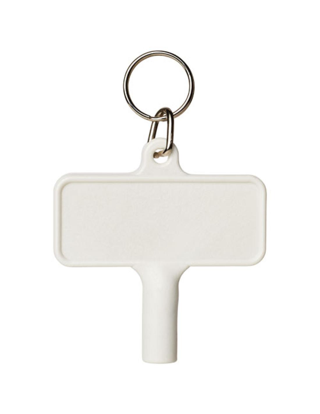 Herramienta de llave con llavero para elementos como radiadores, contadores o postes de luz de la calle. La abertura tiene forma cuadrada con bordes de 5 mm.
