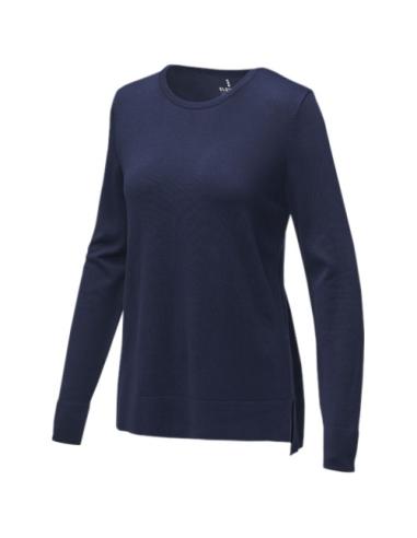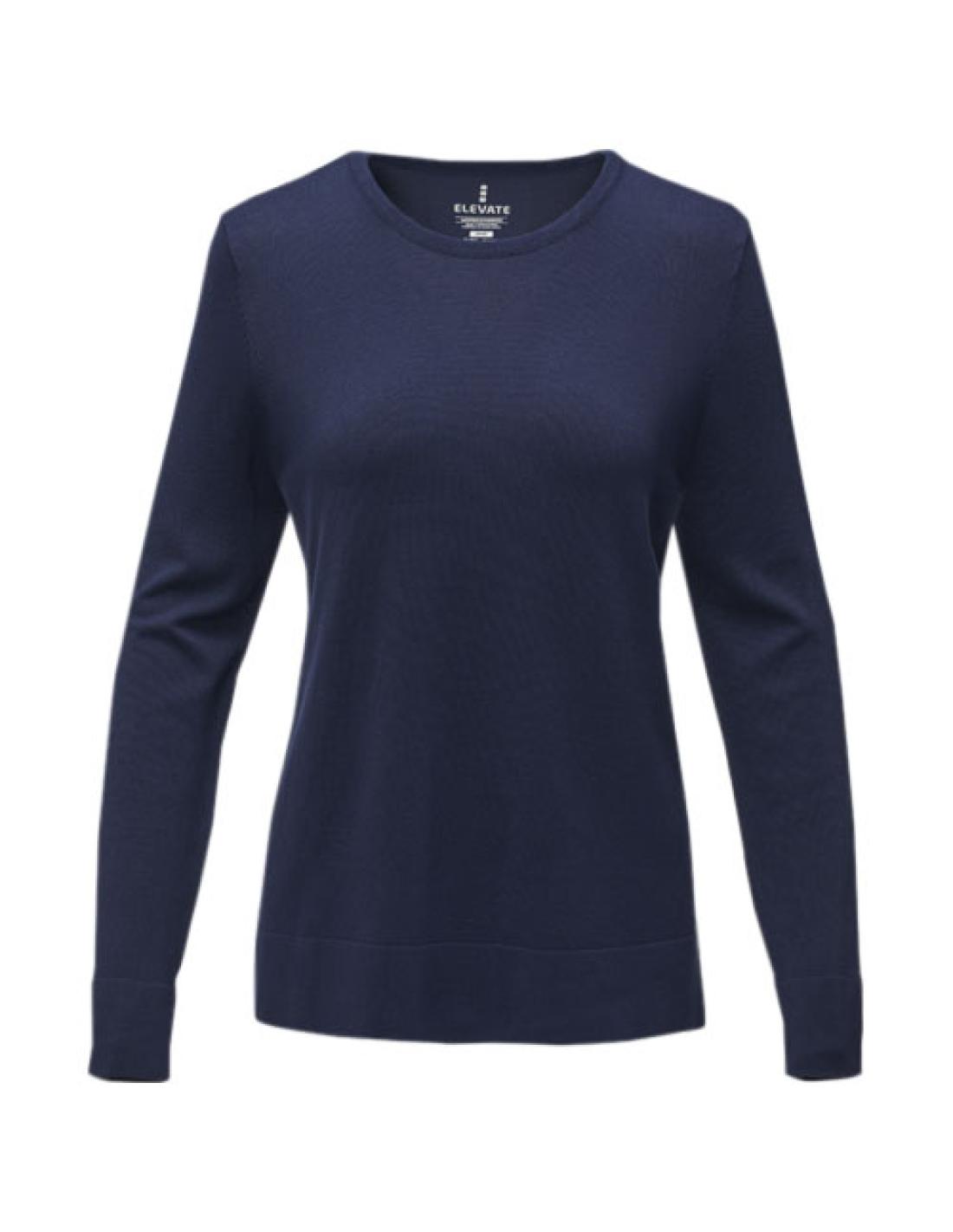 El jersey Merrit de cuello redondo para mujer es una fusión de estilo atemporal y comodidad. Su clásico cuello redondo se complementa con detalles de canalé de punto liso en el cuello, los puños y el dobladillo inferior, proporcionando un aire sofisticado adecuado para cualquier ocasión. Confeccionado con una mezcla de viscosa y nailon en punto plano de galga 12, ofrece una mezcla de suavidad, resistencia y confort. Dale un aire nuevo a tu vestuario con el jersey Merrit, que combina elegancia y calidad. Este jersey está diseñado con un corte entallado para un ajuste perfecto.