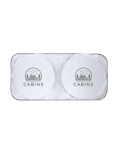 Original parasol plegable en resistente poliéster plateado. Ligero y en medidas 150 x 70 cm, válido para coches y furgonetas. Ribetes reforzados, con sencillo sistema de plegado y funda individual a juego. Presentación desplegado en plancha para fácil impresión, con fundas aparte.