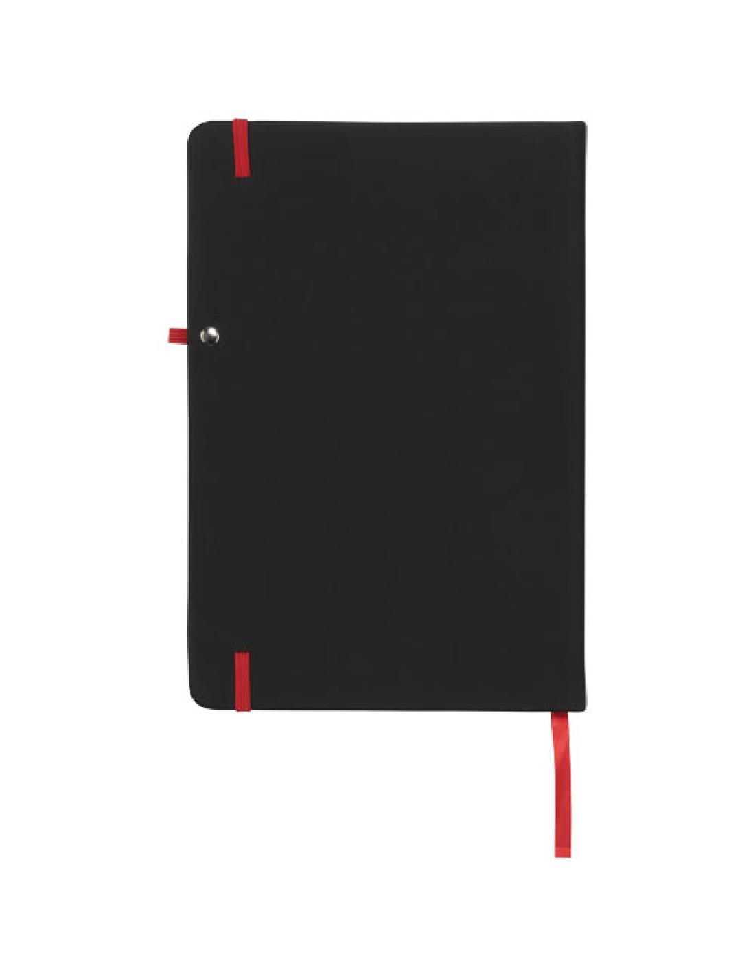 La libreta "Noir" presenta una tapa de PU negra de tacto suave para aportarle un acabado táctil. Cada libreta presenta una banda de cierre en color, soporte para bolígrafo y cinta marcapáginas. La libreta contiene 96 hojas (70 g/m2) de papel rayado en tono crema.