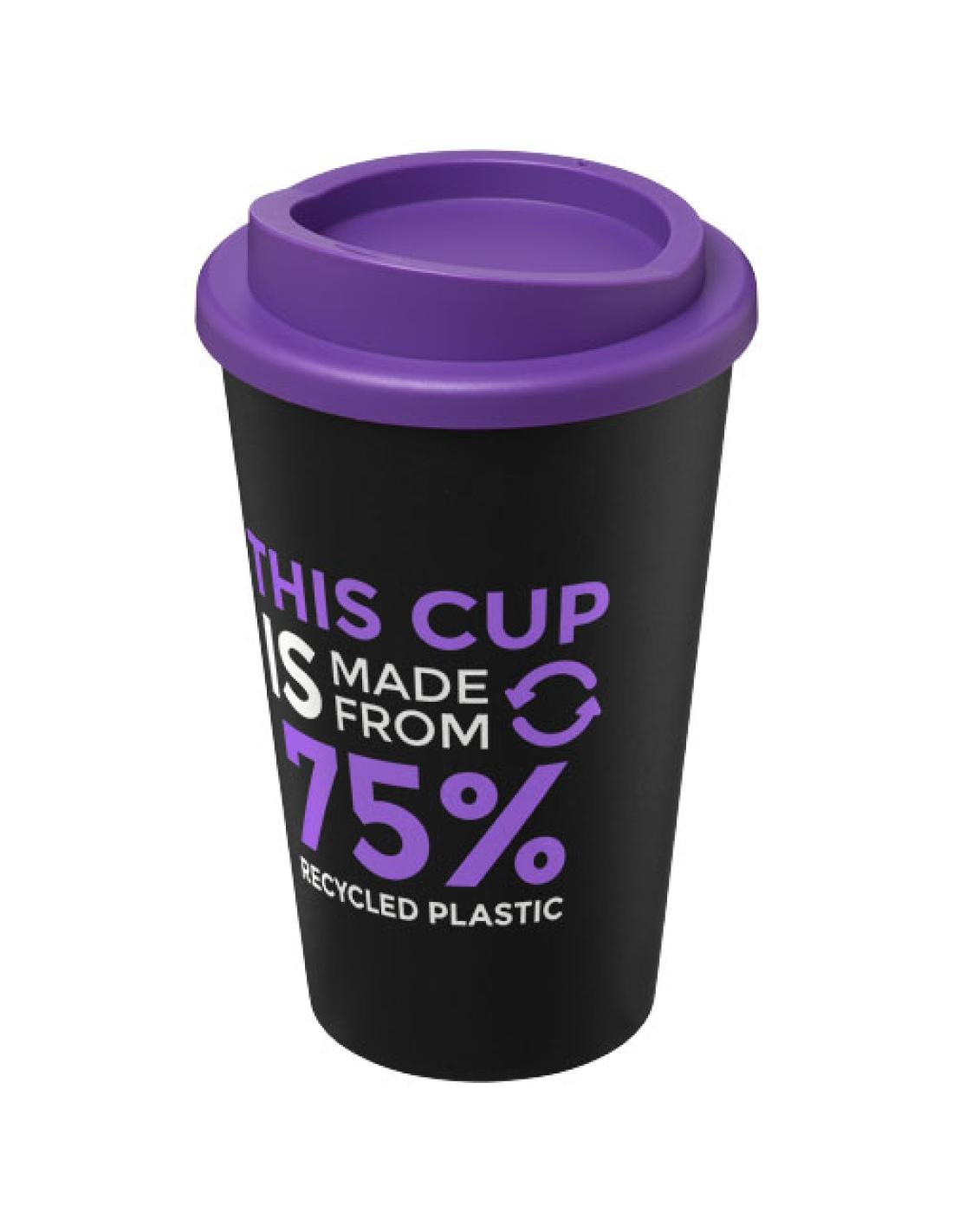 Vaso con aislamiento de doble capa con tapa de rosca. El vaso está hecho de plástico de polipropileno 75 % reciclado, con una capa interior negra, mientras que la tapa está hecha de plástico de polipropileno de grado alimenticio. Dado que la tapa no está hecha de material reciclado, está disponible en una amplia gama de colores diferentes. Los tonos en negro o blanco pueden variar, la opción blanca tiene un efecto de textura y puede incluir tintes de color debido a la naturaleza del material reciclado. Capacidad de 350 ml. Fabricado en el Reino Unido. Embalado en una bolsa compostable.