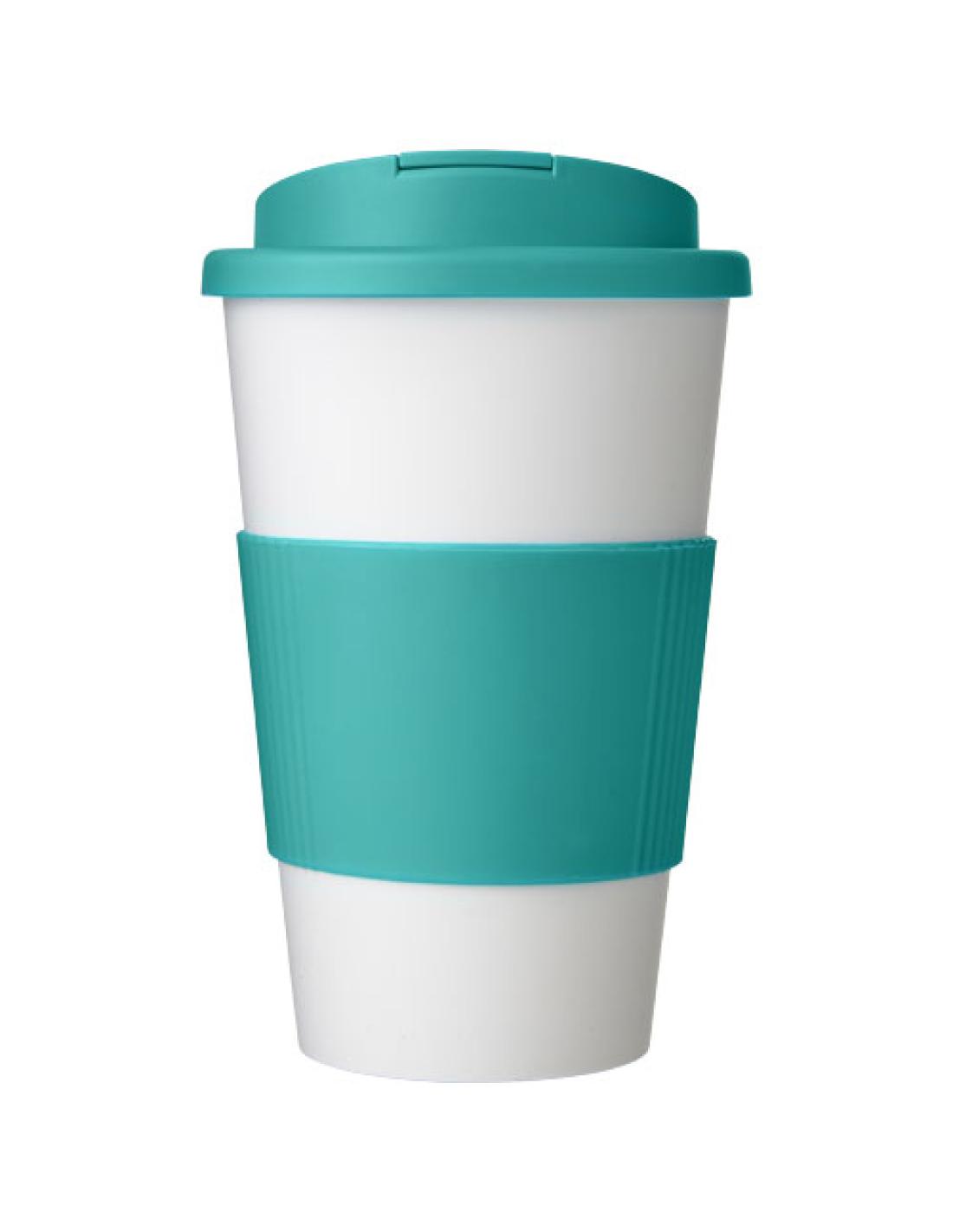 Vaso de cerámica de 330 ml con agarradero de silicona y tapa de plástico N10808001