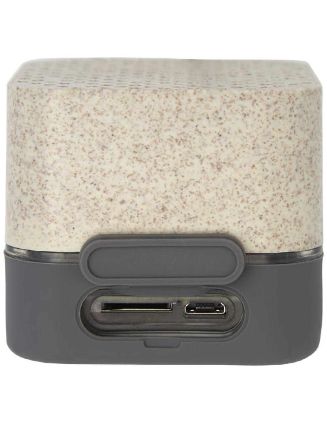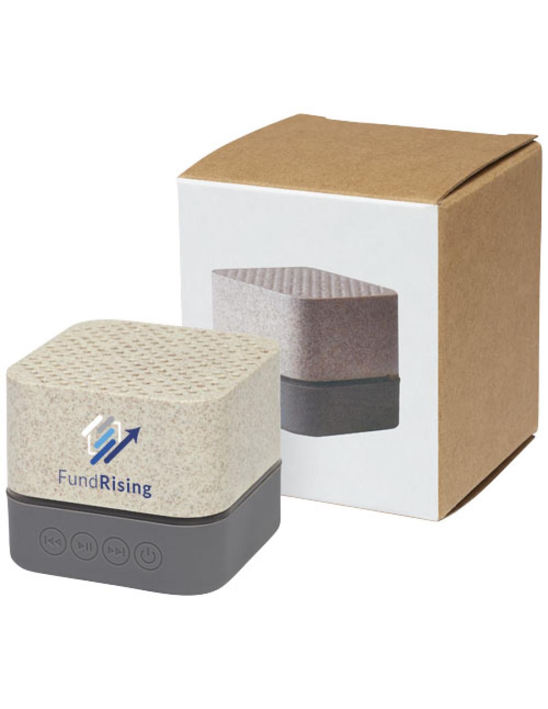 Altavoz Bluetooth® 5.0 de paja de trigo fabricado con un 51 % de paja de trigo y un 49 % de polipropileno. Cuenta con una batería de iones de litio recargable de 350 mAh incorporada que ofrece hasta 1,5 horas de tiempo de reproducción a volumen máximo. El altavoz con Bluetooth® "Aira", con una salida de altavoz de 3 vatios y controles de música/micrófono incorporados, es el altavoz de sobremesa perfecto. El manual de instrucciones y la caja de regalo están hechos de papel reciclado con certificado FSC. Se entrega con un cable de carga micro USB.