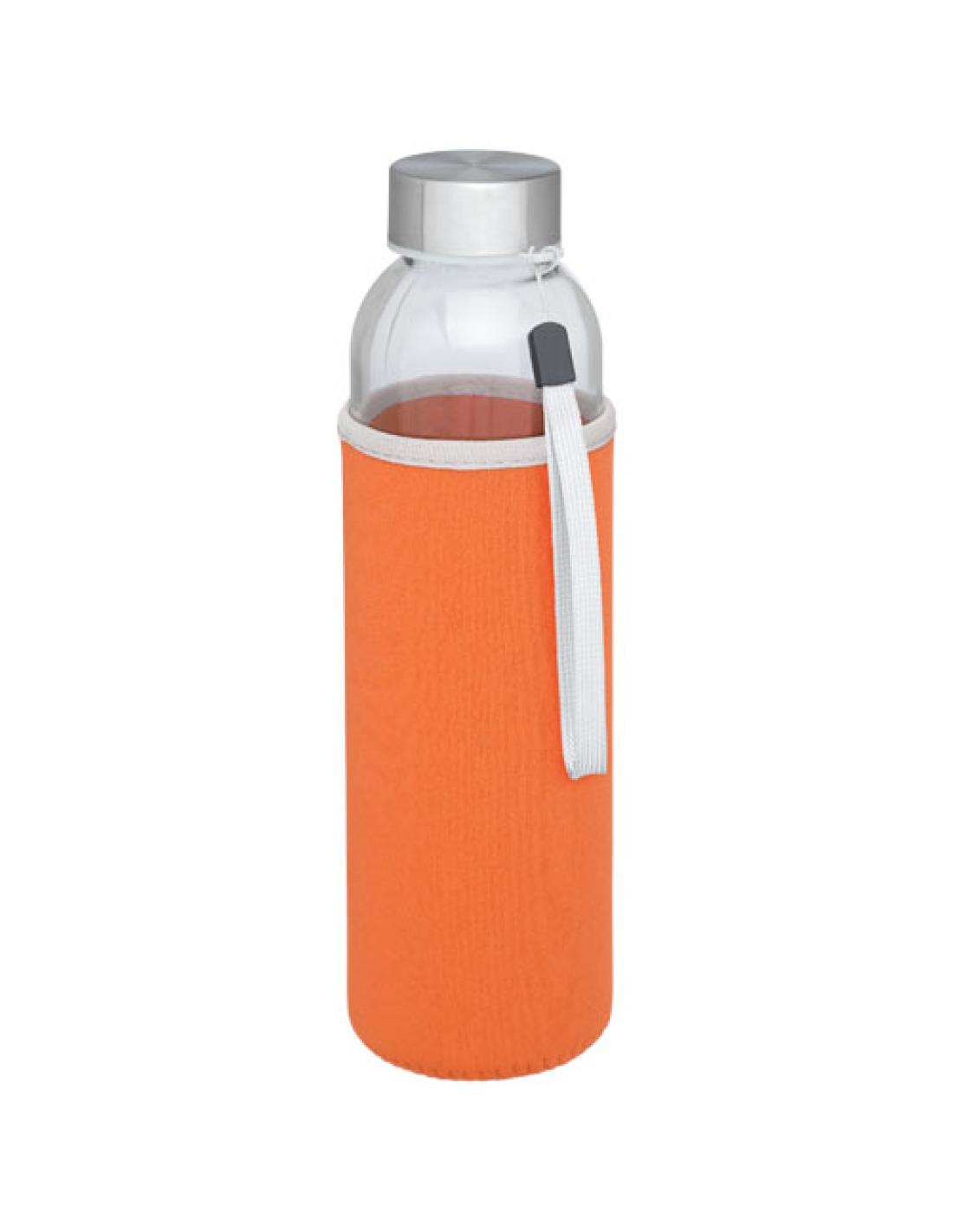 Botella de vidrio de una sola pared con tapa de rosca. La tapa cuenta con una correa para facilitar el transporte, así como una funda de neopreno. Recomendado para bebidas frías. No apto para congelar ni para el microondas. Capacidad de 500 ml. Se presenta en una caja de regalo.