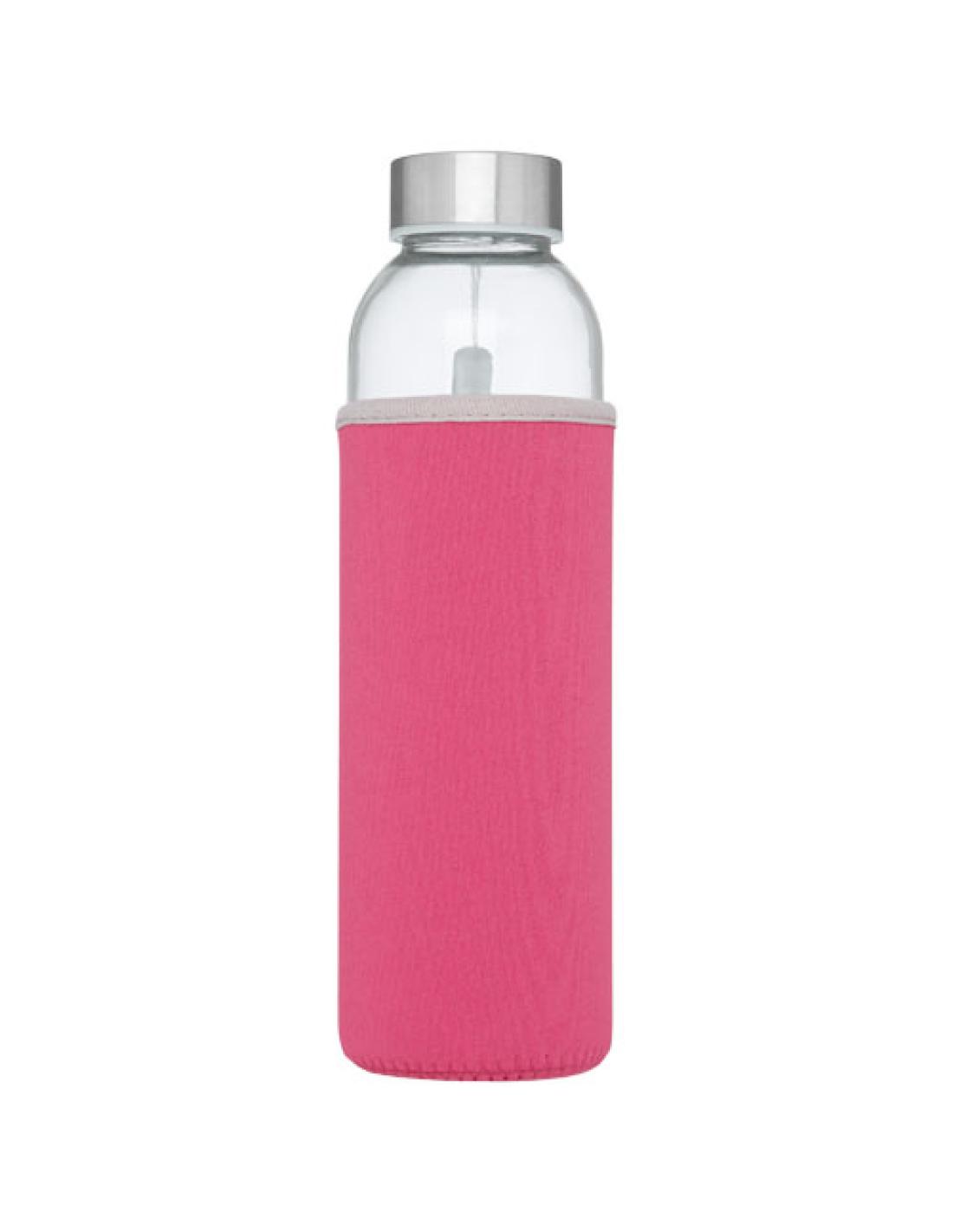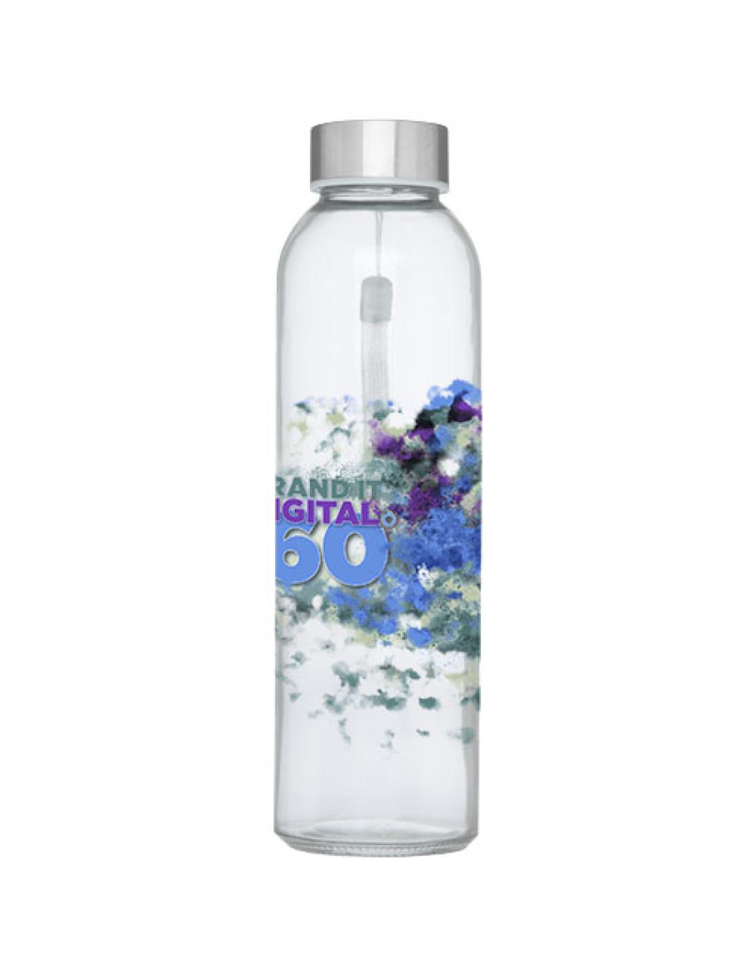 Botella de vidrio de una sola pared con tapa de rosca. La tapa cuenta con una correa para facilitar el transporte, así como una funda de neopreno. Recomendado para bebidas frías. No apto para congelar ni para el microondas. Capacidad de 500 ml. Se presenta en una caja de regalo.