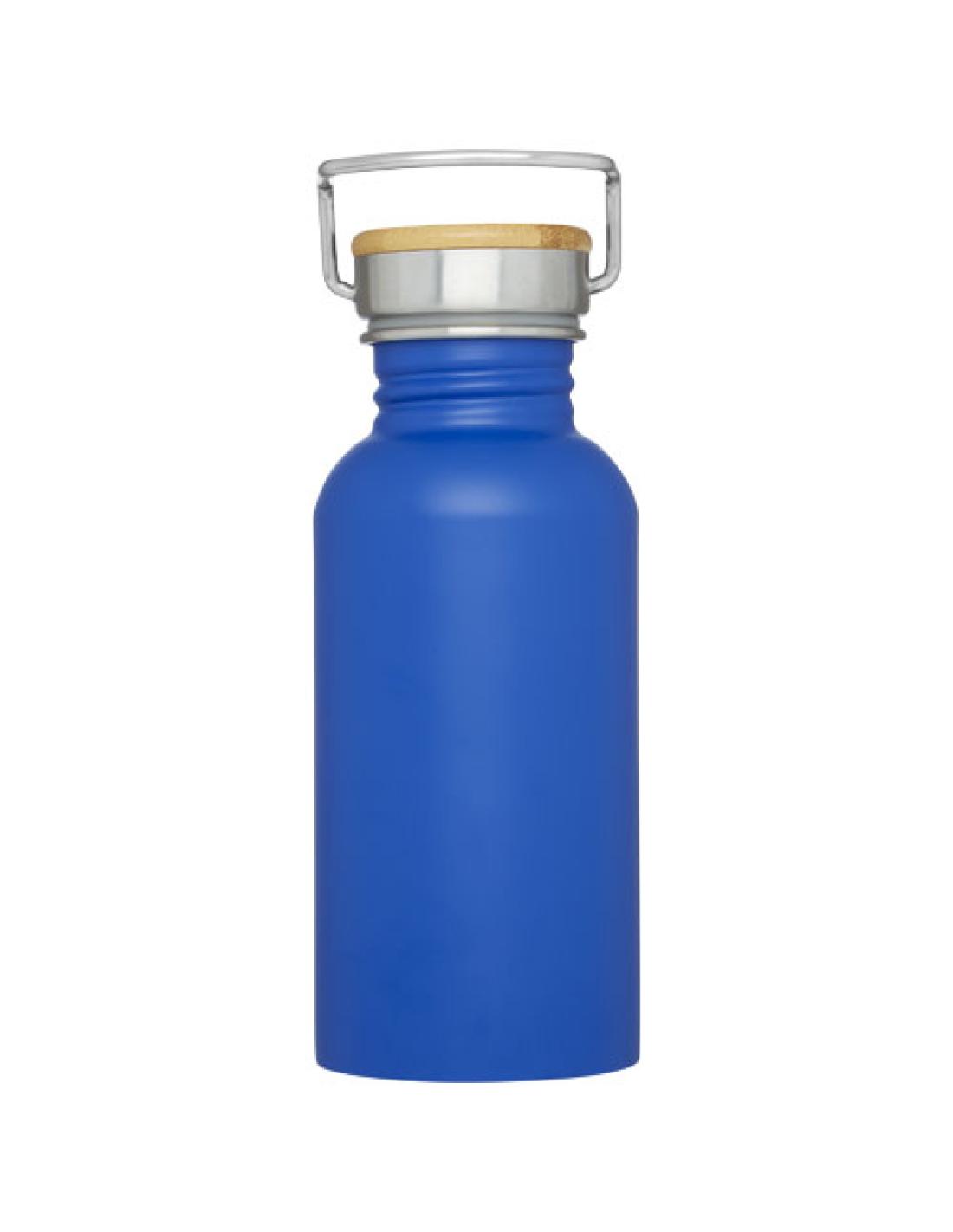 Botella de acero inoxidable de una sola pared con tapa de rosca. La parte superior de la tapa es de bambú, y lleva un asa para facilitar el transporte. Capacidad de 550 ml. Se presenta en una caja de regalo "Avenue".