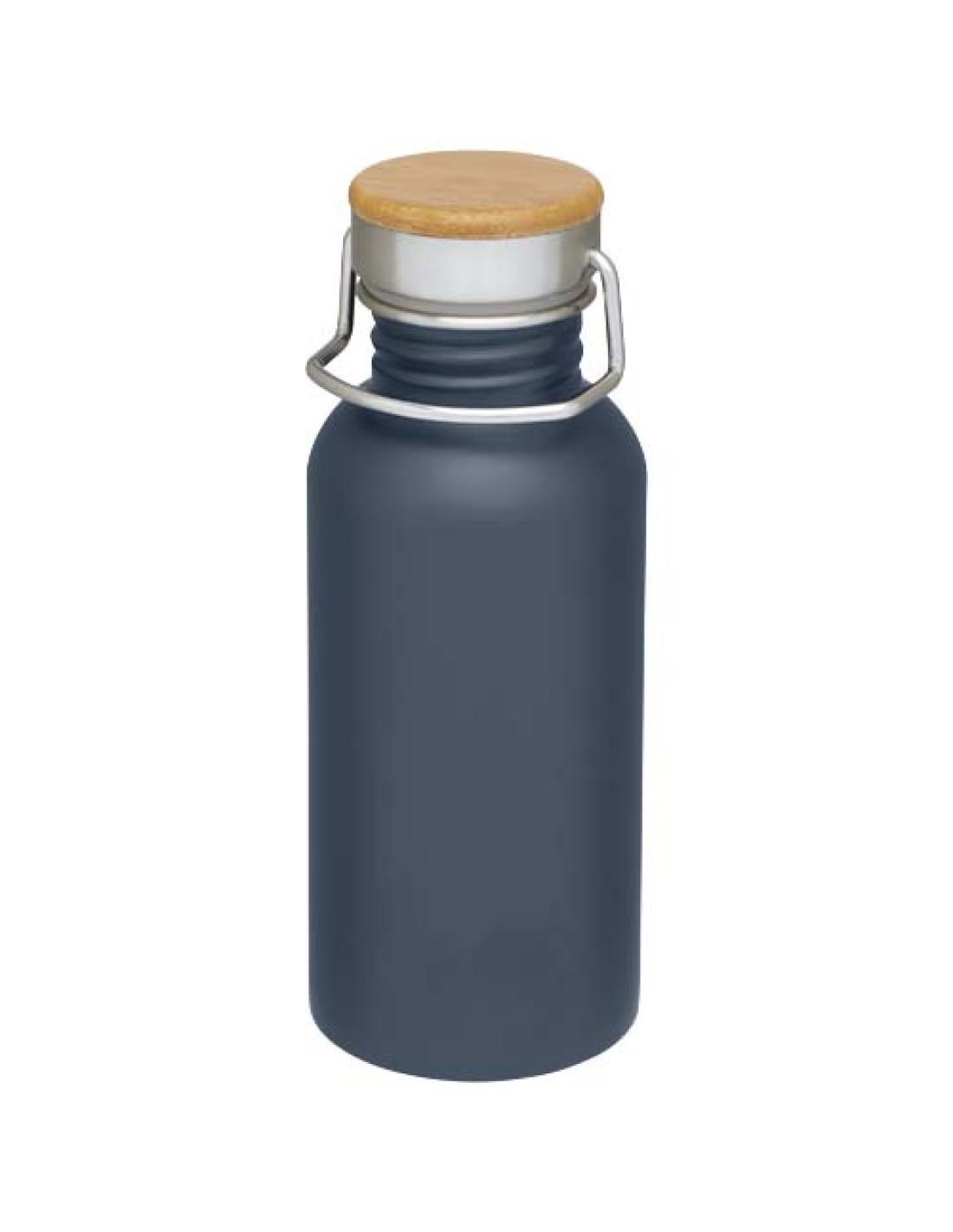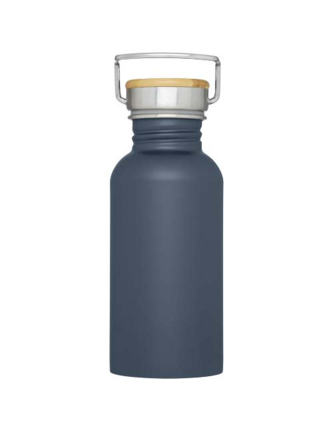 Botella de acero inoxidable de una sola pared con tapa de rosca. La parte superior de la tapa es de bambú, y lleva un asa para facilitar el transporte. Capacidad de 550 ml. Se presenta en una caja de regalo "Avenue".