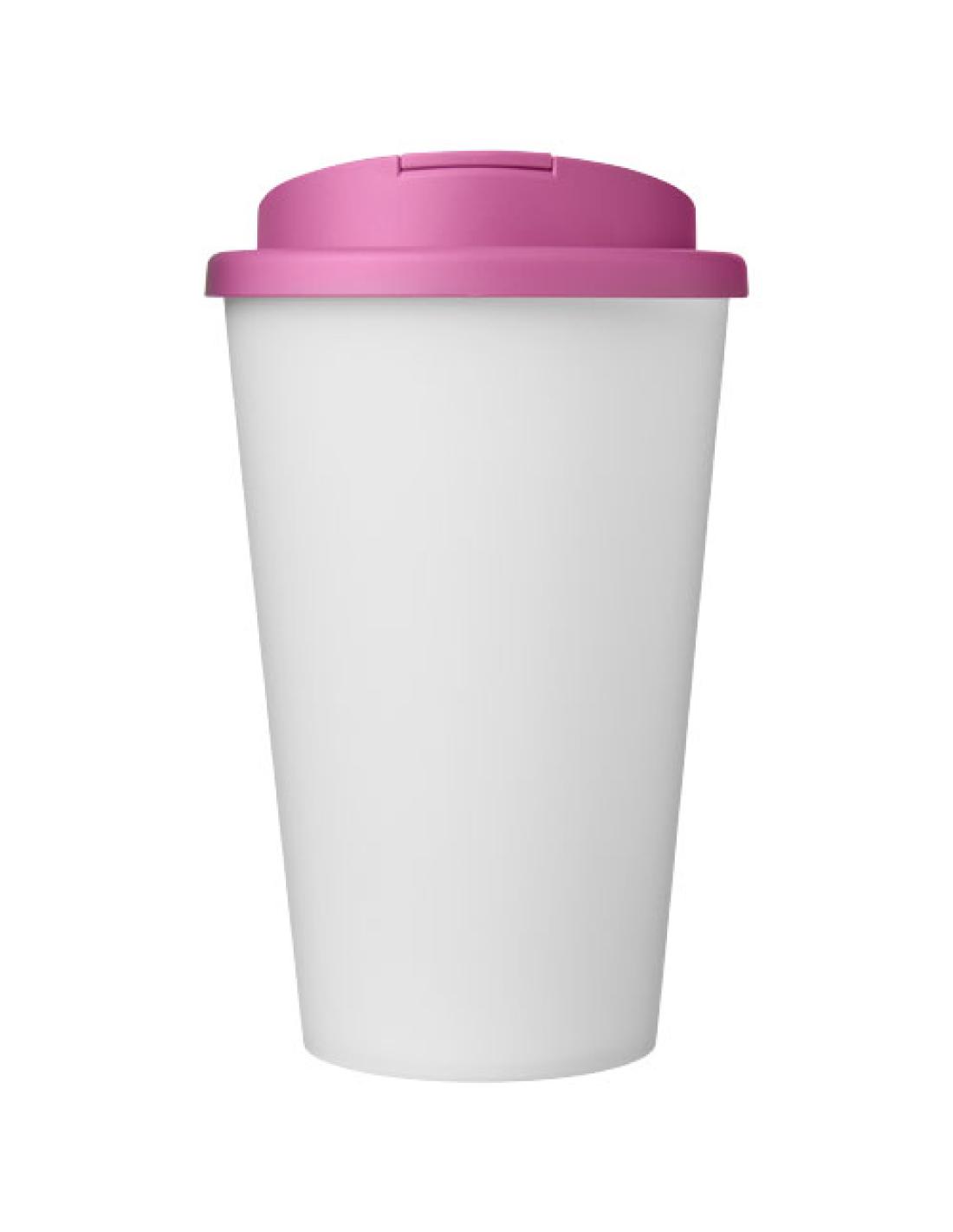 Vaso con aislamiento de doble pared y tapa de rosca segura a prueba de derrames y capa interna negra. Los clips de la tapa se cierran para evitar derrames, y están fabricados sin silicona para que el vaso sea totalmente reciclable. El vaso está hecho de plástico PP 75 % reciclado y la tapa de plástico PP de grado alimenticio. Los tonos en negro o blanco pueden variar, la opción blanca tiene un efecto de textura y puede incluir tintes de color debido a la naturaleza del material reciclado. Cumple con la norma EN12875-1, es apto para el lavavajillas y el microondas. Capacidad de 350 ml. Suministrado en una bolsa compostable. Fabricado en el Reino Unido. Sin BPA