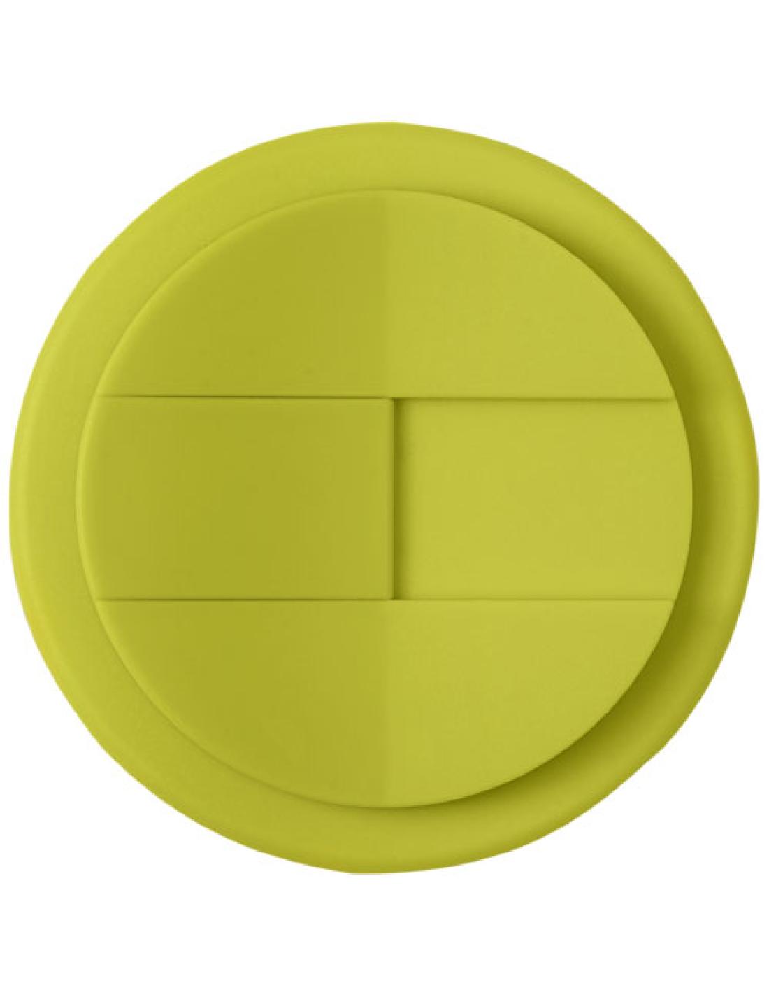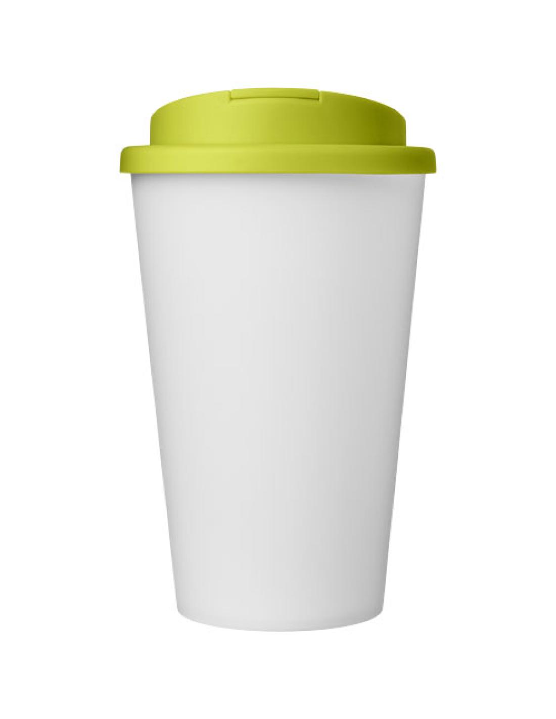 Vaso con aislamiento de doble pared y tapa de rosca segura a prueba de derrames y capa interna negra. Los clips de la tapa se cierran para evitar derrames, y están fabricados sin silicona para que el vaso sea totalmente reciclable. El vaso está hecho de plástico PP 75 % reciclado y la tapa de plástico PP de grado alimenticio. Los tonos en negro o blanco pueden variar, la opción blanca tiene un efecto de textura y puede incluir tintes de color debido a la naturaleza del material reciclado. Cumple con la norma EN12875-1, es apto para el lavavajillas y el microondas. Capacidad de 350 ml. Suministrado en una bolsa compostable. Fabricado en el Reino Unido. Sin BPA