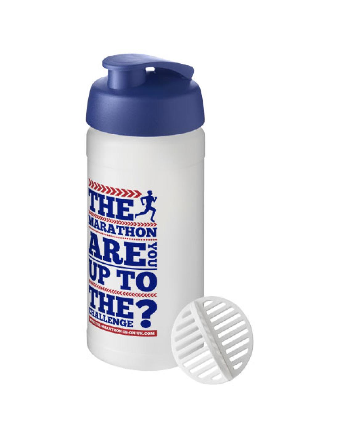 Bidón deportivo de una sola pared con bola de coctelera para la mezcla suave de batidos de proteínas. Cuenta con una tapa a prueba de derrames con cierre Flip. Capacidad de 500 ml. Fabricada en el Reino Unido. Sin BPA.