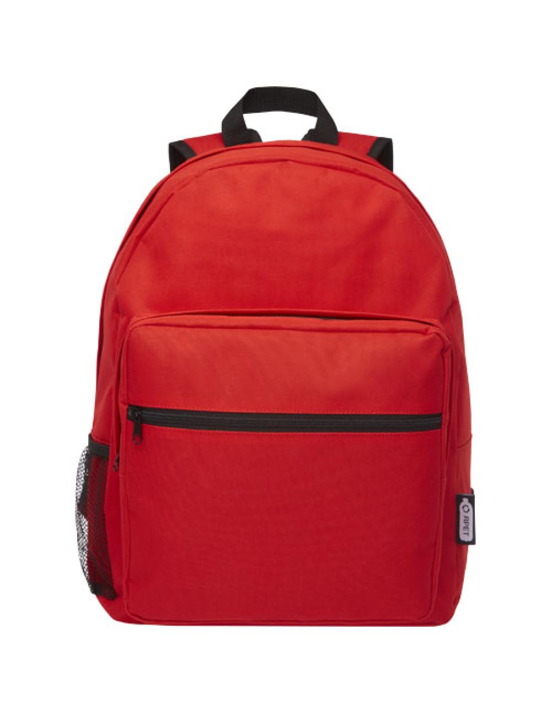 Resistente mochila de plástico 100 % reciclado, que contribuye a la reducción de los desechos plásticos. Cuenta con correas de hombro ajustables, dos compartimentos con cremallera y un bolsillo frontal con cremallera. Para fabricar esta bolsa se reciclaron aproximadamente 15 botellas.