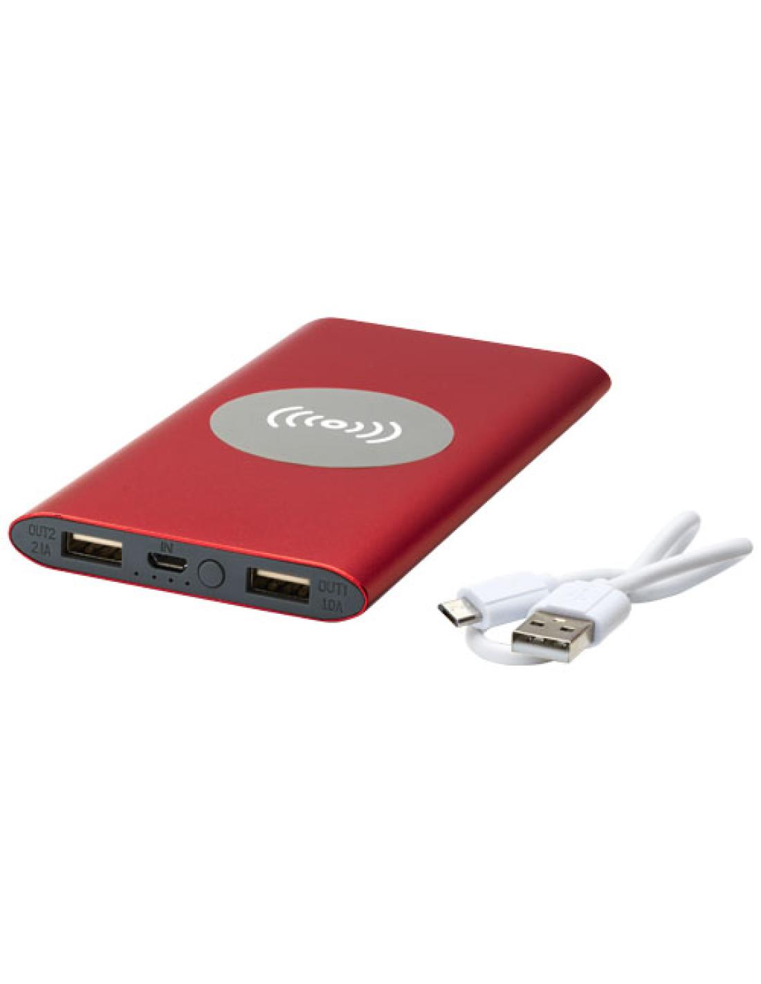 Batería externa de 8000 mAh con carcasa de aluminio. Compatible con carga inalámbrica de 5 W y también viene con salida micro USB para realizar la carga con cable. Con la batería de polímero de litio de 8000 mAh se puede cargar completamente un smartphone varias veces. El indicador de potencia muestra el nivel de la batería en todo momento. Puerto de entrada micro USB: Salida 5 V/2 A: 5 V/2A. Salida inalámbrica de 5 W. Incluye cable de carga de plástico TPE sin PVC. Se entrega en una caja de regalo estándar.