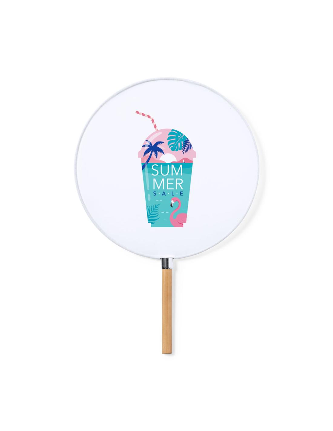 Elegante Pai Pai fabricado en resistente poliéster especial para sublimación. Con mango en bambú y detalle en cromado.