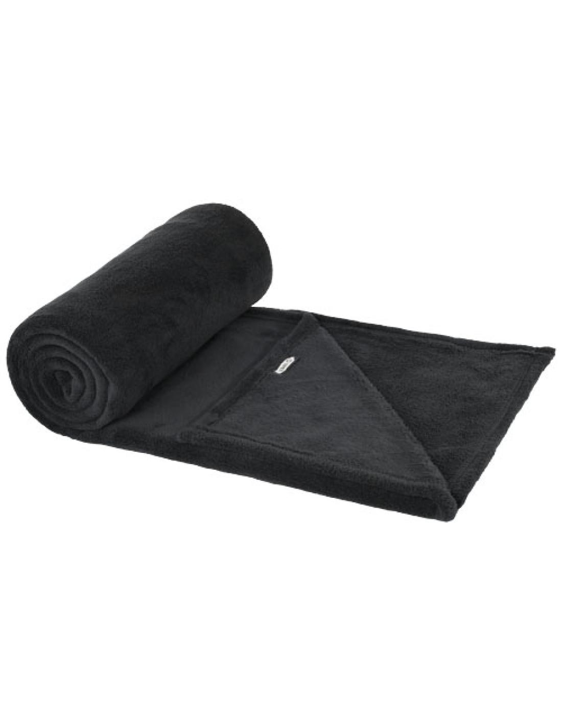 Manta de tejido polar coral de RPET ultrasuave con certificación GRS. Viene con una bolsa de transporte de RPET 190T con cierre de cuerdas. Empaquetada en una bolsa de polietileno reciclado. Tamaño de la bolsa: 37 cm de longitud y 16 cm de diámetro.