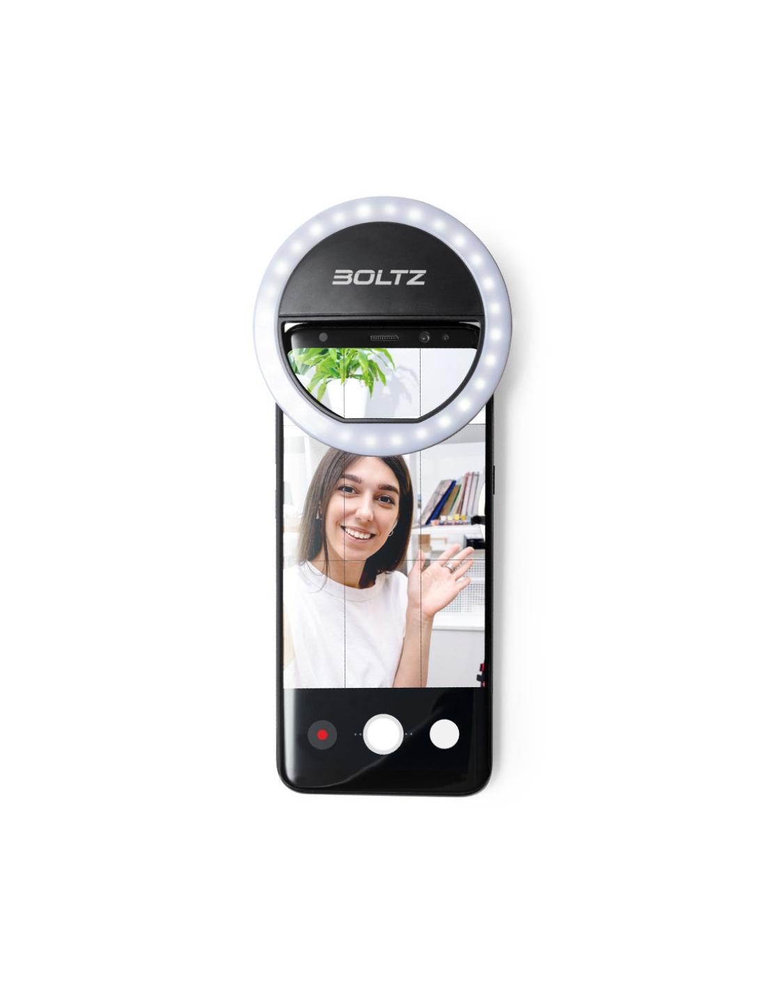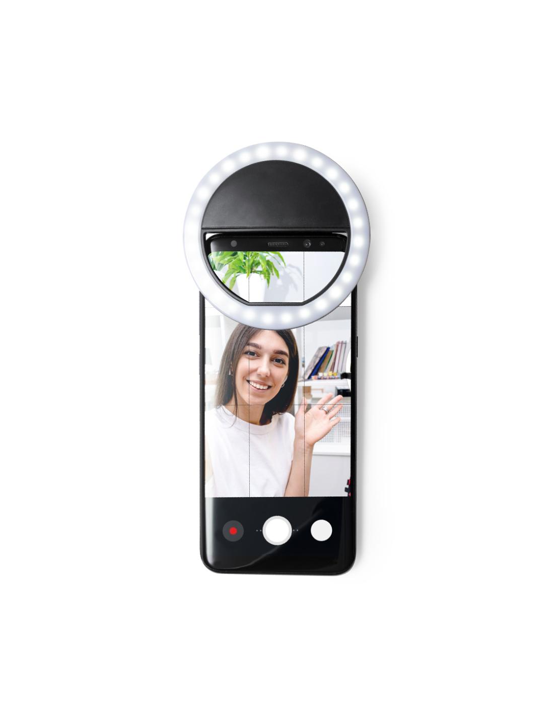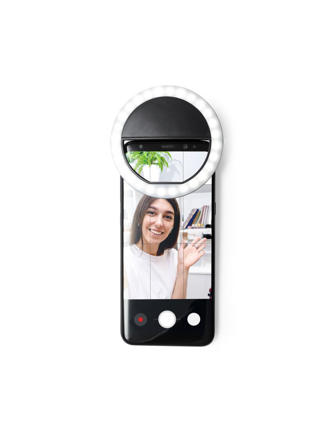 Anillo de luz led con acople para smartphone, fabricado en resistente ABS. 28 ledes, con 3 niveles de intensidad y recargable por USB (cable Micro USB incluido). Presentado en atractiva caja de diseño. Disponible manual en español e inglés.