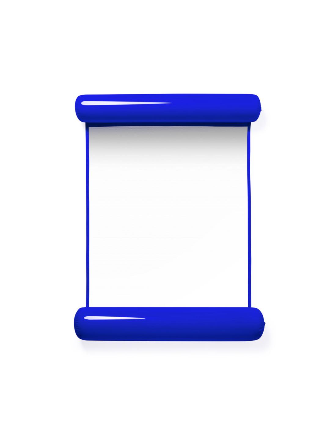 Original colchoneta con extremos hinchables en resistente PVC. Enrollable y con resistente redecilla central de 80x70 cm en poliéster de color blanco. Con plegado especial para fácil impresión y disponible en variada gama de colores.