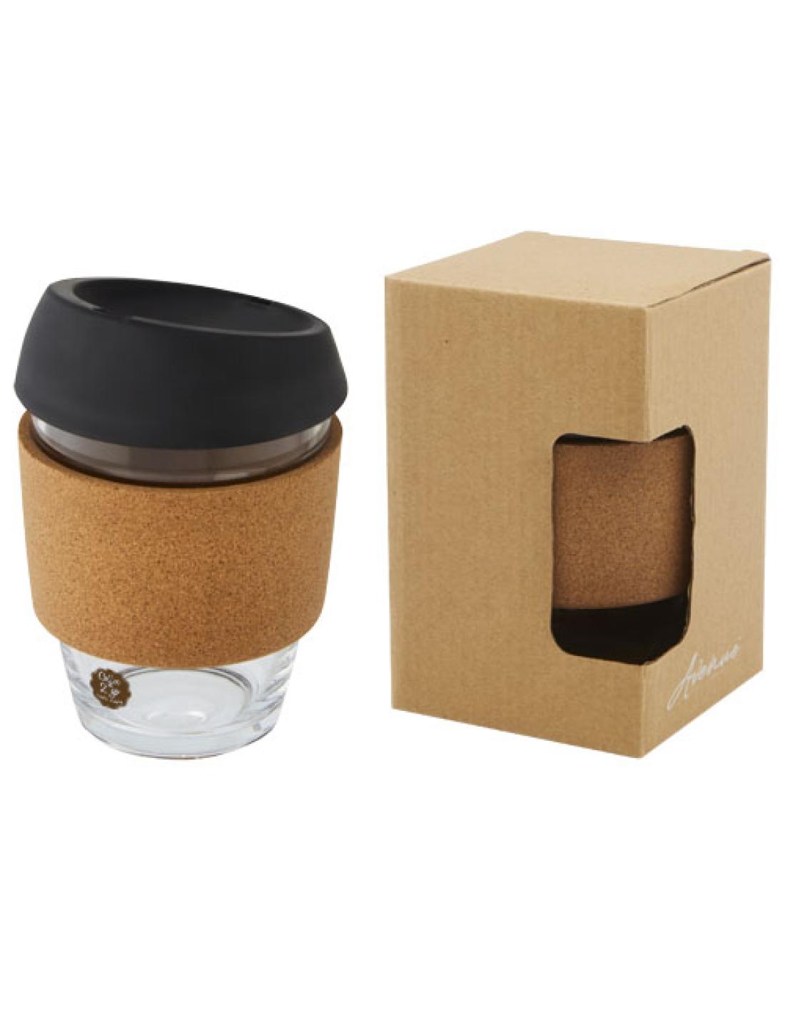 Vaso de vidrio borosilicato de una sola pared con un ligero agarre de corcho. Cuenta con una tapa extraíble de silicona de grado alimentario. El vaso está hecho de resistente vidrio borosilicato 100 % que conserva la bebida en buen estado y no contiene ningún producto químico dañino. Probado y homologado conforme a la legislación alemana sobre seguridad alimentaria (LFGB), y comprobado el contenido de ftalatos según la normativa REACH. Cabe debajo de la mayoría de las cafeteras, por lo que es el vaso perfecto para usar en los desplazamientos. Capacidad de 360 ml. Al retirar el agarre de corcho, el vaso se puede lavar en el lavavajillas. Se presenta en una caja de regalo de cartón reciclado.