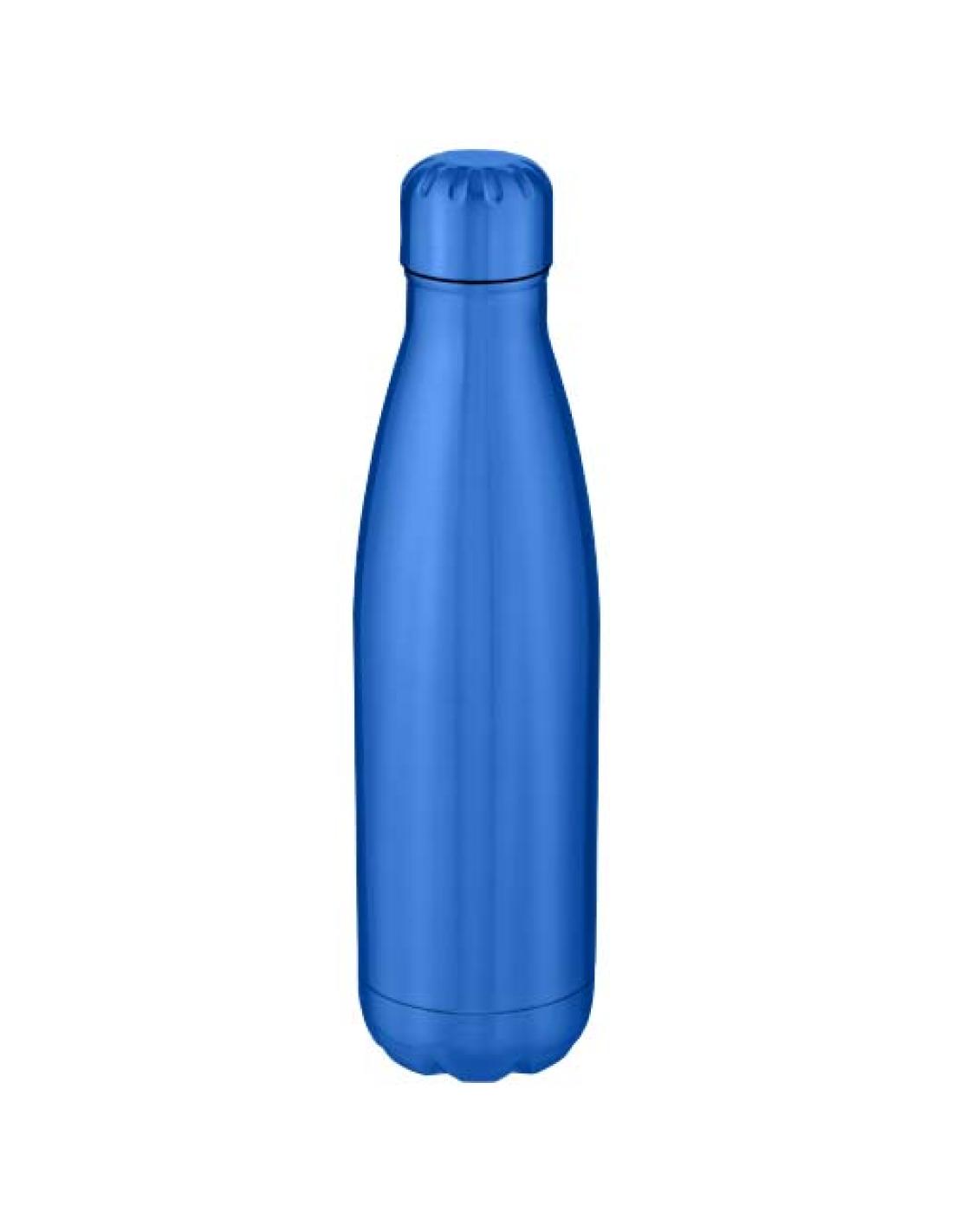 Botella de acero inoxidable con aislamiento al vacío y un diseño icónico. El acero inoxidable 18/8 con aislamiento mantiene las bebidas calientes o frías durante varias horas. Probado y homologado conforme a la legislación alemana sobre seguridad alimentaria (LFGB), y comprobado el contenido de ftalatos según la normativa REACH. Con una base que se adapta a la mayoría de los portavasos, esta elegante botella de agua es un artículo promocional perfecto. Capacidad de 500 ml. Se presenta en una caja de regalo de cartón reciclado.