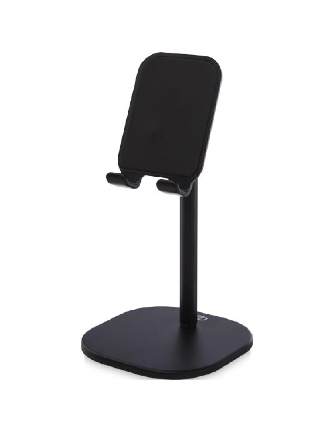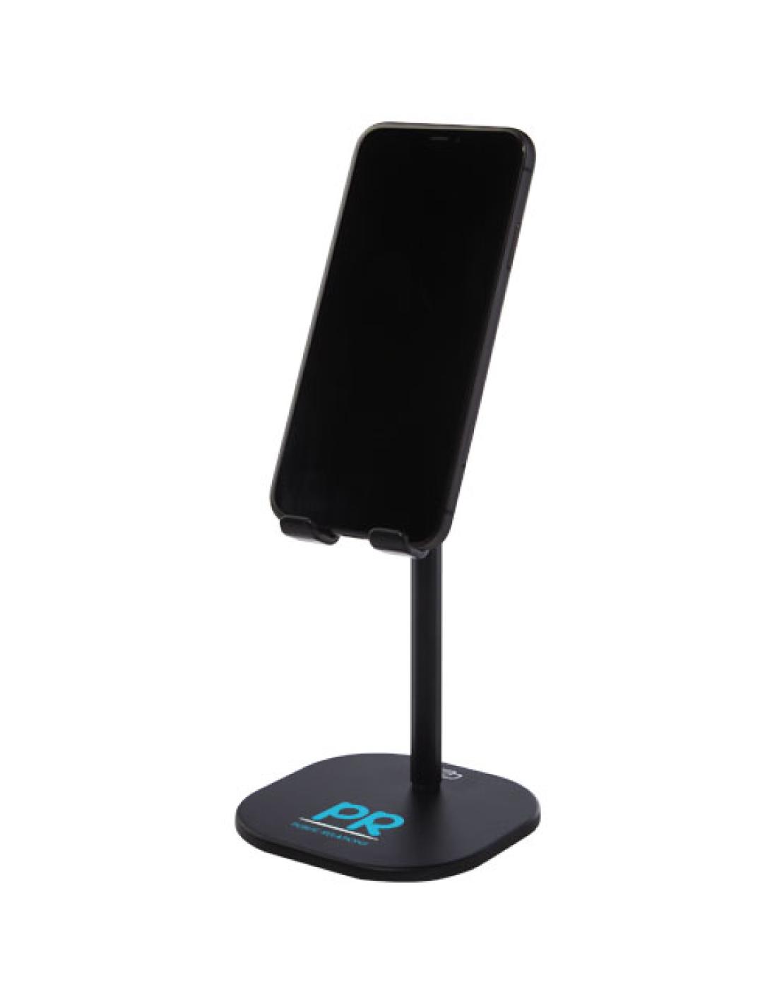 Soporte para teléfono/tableta fabricado en aluminio y plástico ABS. Tanto la altura como el ángulo de visión pueden ajustarse, lo que lo convierte en el accesorio perfecto para las conferencias telefónicas, las retransmisiones, las difusiones en directo o simplemente para ver una película. La base tiene material antideslizante para evitar que se mueva. Se entrega en una caja de papel kraft de primera calidad con una pegatina de colores.