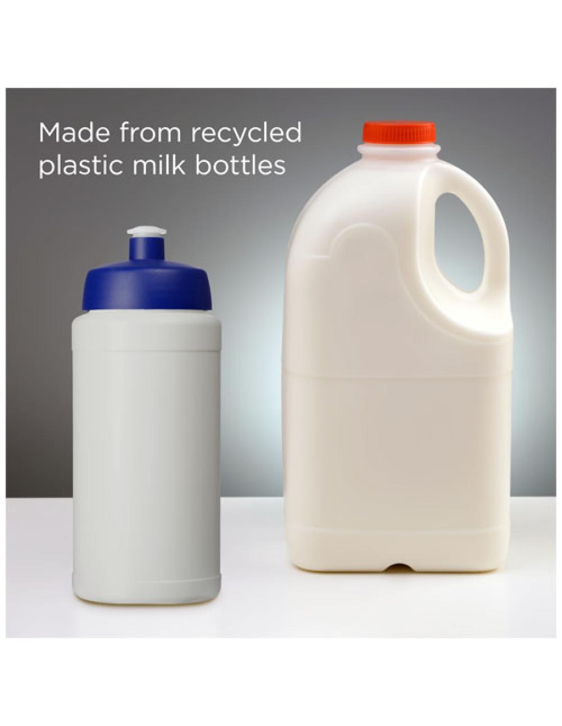Este bidón deportivo de una capa transforma las botellas de leche de plástico de un solo uso en algo reutilizable. Cuenta con una tapa a prueba de derrames con boquilla abatible. Capacidad de 500 ml. Debido a la naturaleza del plástico reciclado, las tonalidades pueden variar ligeramente y puede haber pequeñas manchas de colores. Fabricado en el Reino Unido.