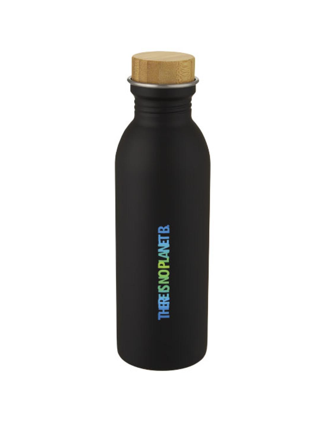 Botella deportiva de una sola pared de acero inoxidable 18/8 con tapa de bambú. No contiene BPA y se ha probado y homologado según la legislación alemana sobre seguridad alimentaria (LFGB). Contenido de ftalatos probado y homologado según la normativa REACH. El bambú utilizado procede de fuentes sostenibles, ecológica y socialmente responsables. Capacidad de 650 ml. Se recomienda lavarla a mano. Se presenta en una caja de regalo de cartón reciclado.
