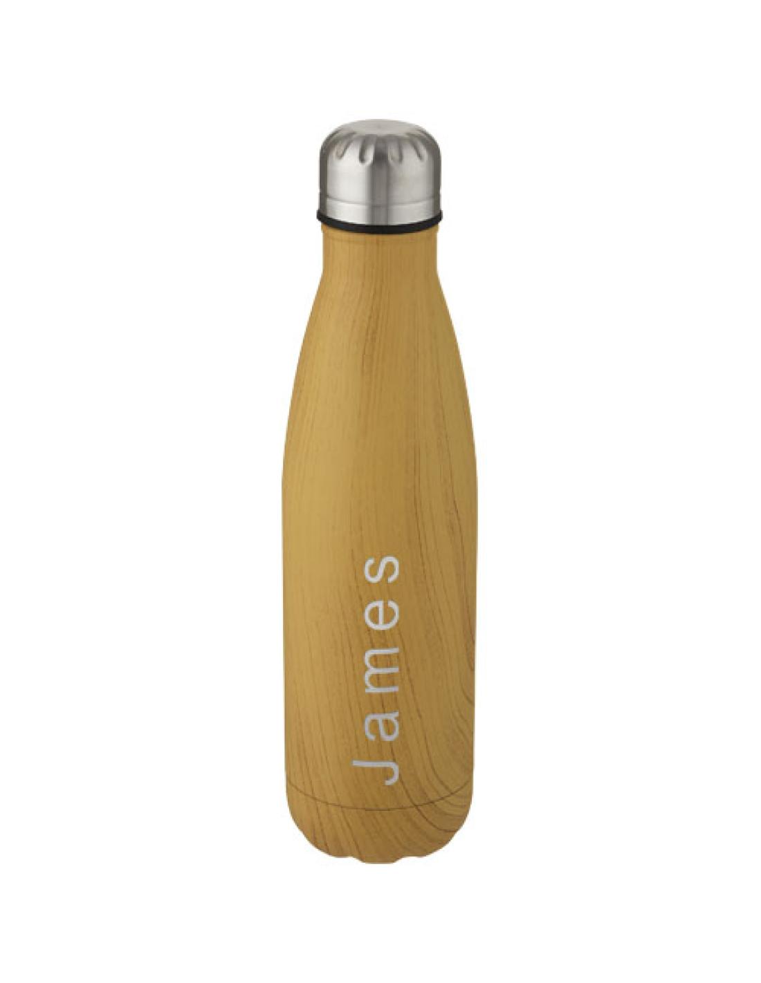 Botella de acero inoxidable con aislamiento al vacío, un diseño icónico y acabado en efecto madera. El acero inoxidable 18/8 con aislamiento mantiene las bebidas calientes o frías durante varias horas. No contiene BPA y se ha probado y homologado según la legislación alemana sobre seguridad alimentaria (LFGB). Contenido de ftalatos probado y homologado según la normativa REACH. Con una base que se adapta a la mayoría de los portavasos, esta elegante botella de agua es un artículo promocional perfecto. Capacidad de 500 ml. Se recomienda lavarla a mano. Se presenta en una caja de regalo de cartón reciclado.