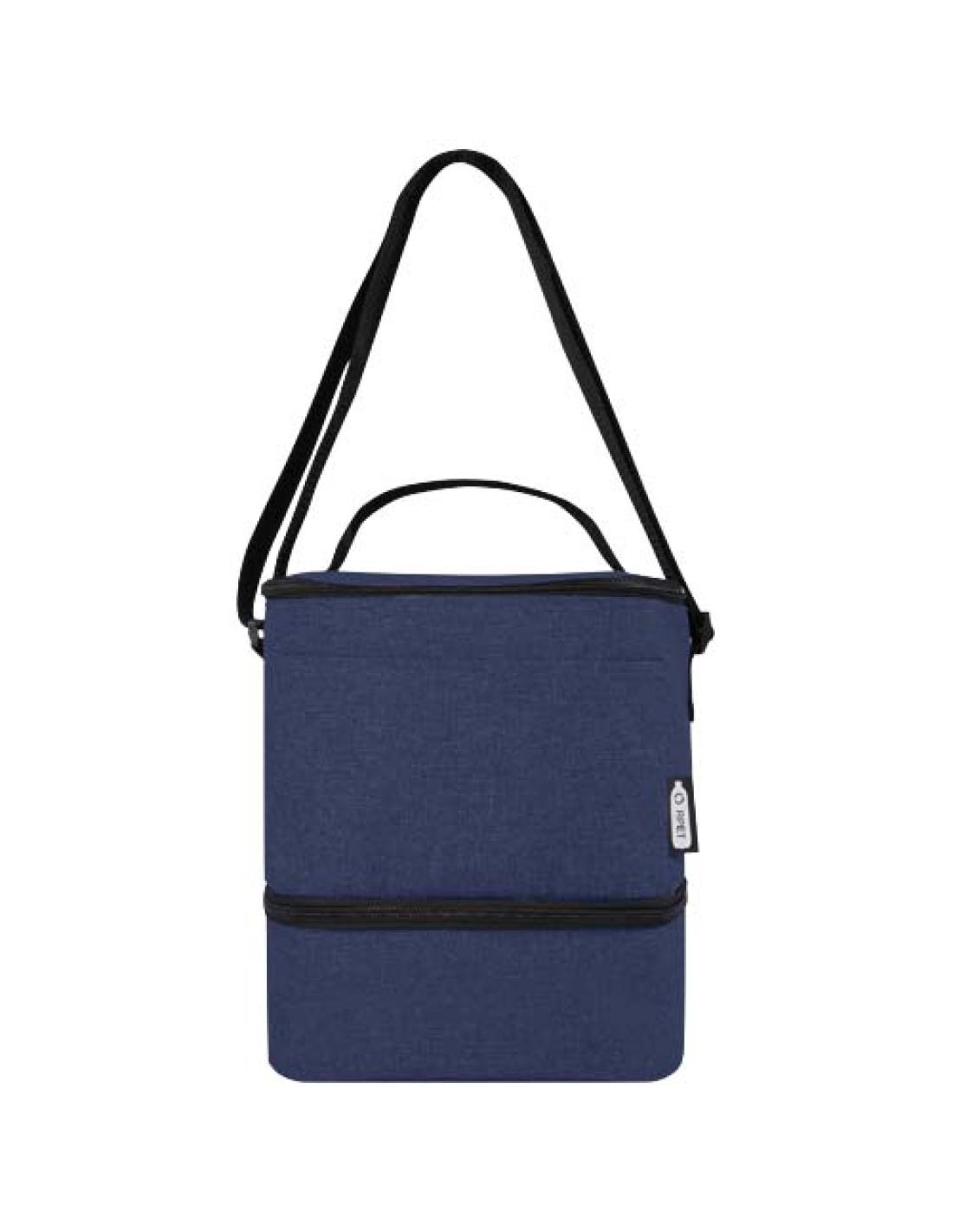La bolsa isotérmica reciclada "Tundra" ofrece un amplio espacio para todos tus alimentos. Cuenta con un compartimento superior y otro inferior aislados con cremallera. El compartimento inferior es perfecto para una fiambrera, y el bolsillo oblicuo delantero es ideal para guardar otros artículos pequeños. El forro de PEVA y el exterior de la bolsa están fabricados con plástico PET reciclado certificado GRS.
