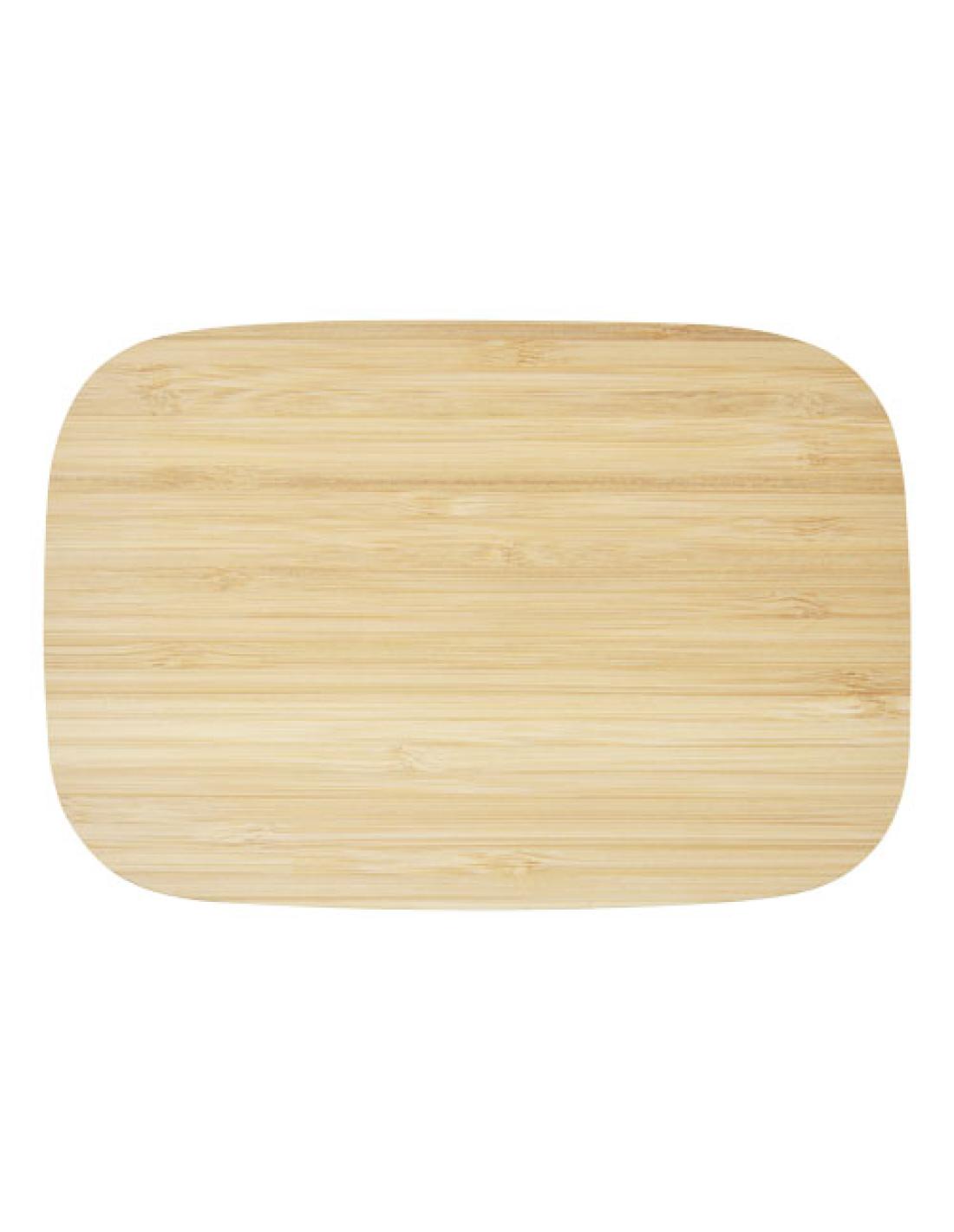 Esta fiambrera de acero inoxidable tiene una capacidad de 700 ml, y una tapa de bambú con un sellado de silicona para mantenerla cerrada correctamente. Cuenta con un cierre de cinta elástica que mantiene la tapa firmemente en su lugar durante los desplazamientos. El bambú utilizado se obtiene y produce según normas de sostenibilidad. El recipiente se puede lavar en el lavavajillas sin la tapa.