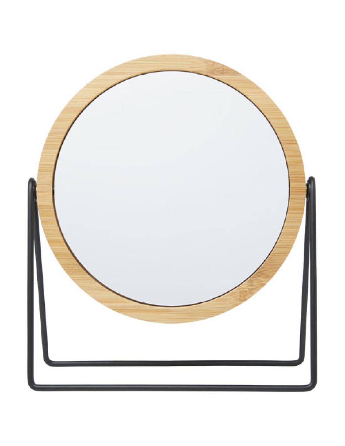 Espejo giratorio de 360 grados para colocar en el tocador o la encimera. El espejo está hecho de bambú obtenido y producido según normas de sostenibilidad.