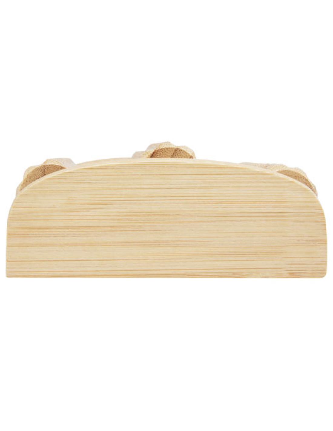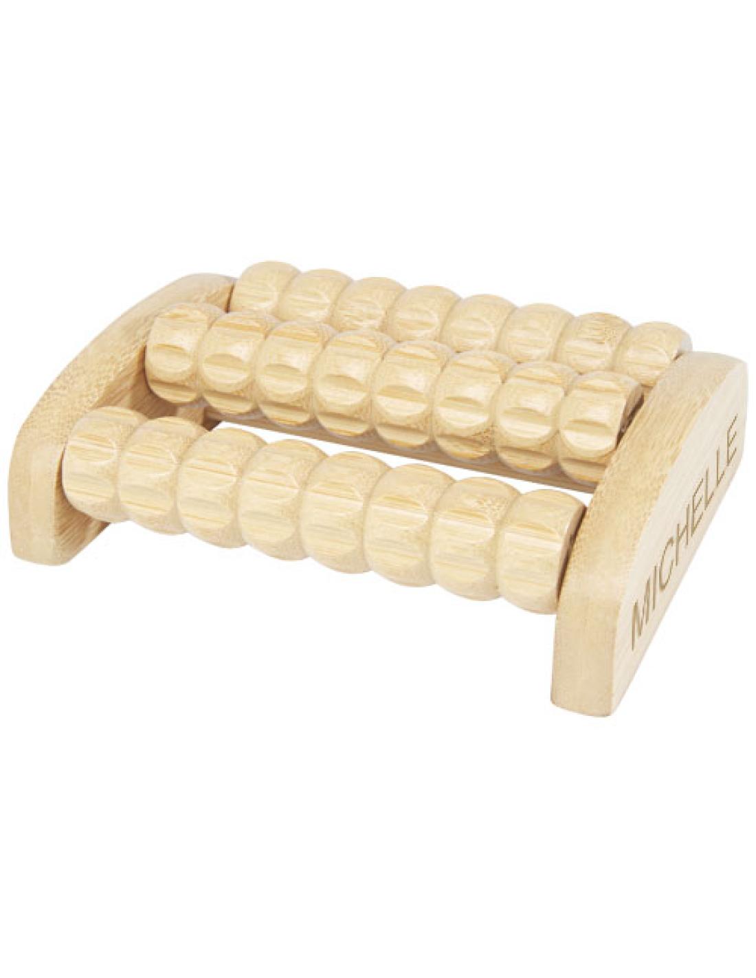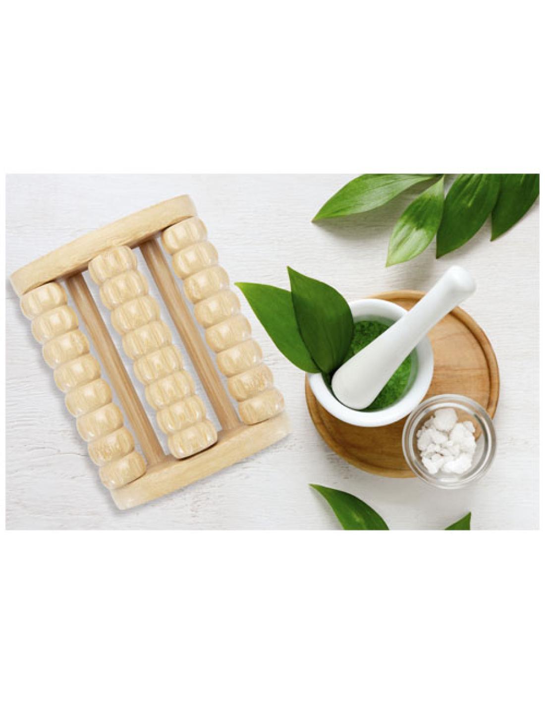 Rodillo de masaje para pies hecho de bambú con 3 hileras de barras de masaje. Solo tiene que colocar el masajeador en el suelo y luego mover los pies para una agradable sensación de relajación. El bambú utilizado se obtiene y produce según normas de sostenibilidad.