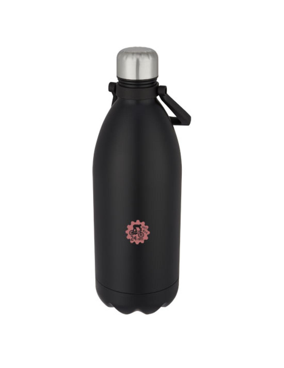 Botella de acero inoxidable con aislamiento al vacío extragrande y un diseño icónico con una asa cómoda para facilitar su transporte. No contiene BPA y se ha probado y homologado según la legislación alemana sobre seguridad alimentaria (LFGB). Contenido de ftalatos probado y homologado según la normativa REACH. Tiene una capacidad de 1,5 L. Se recomienda lavarla a mano. Se presenta en una caja de regalo de cartón reciclado. Mantiene las bebidas calientes durante 12 horas y frías durante 24 horas.