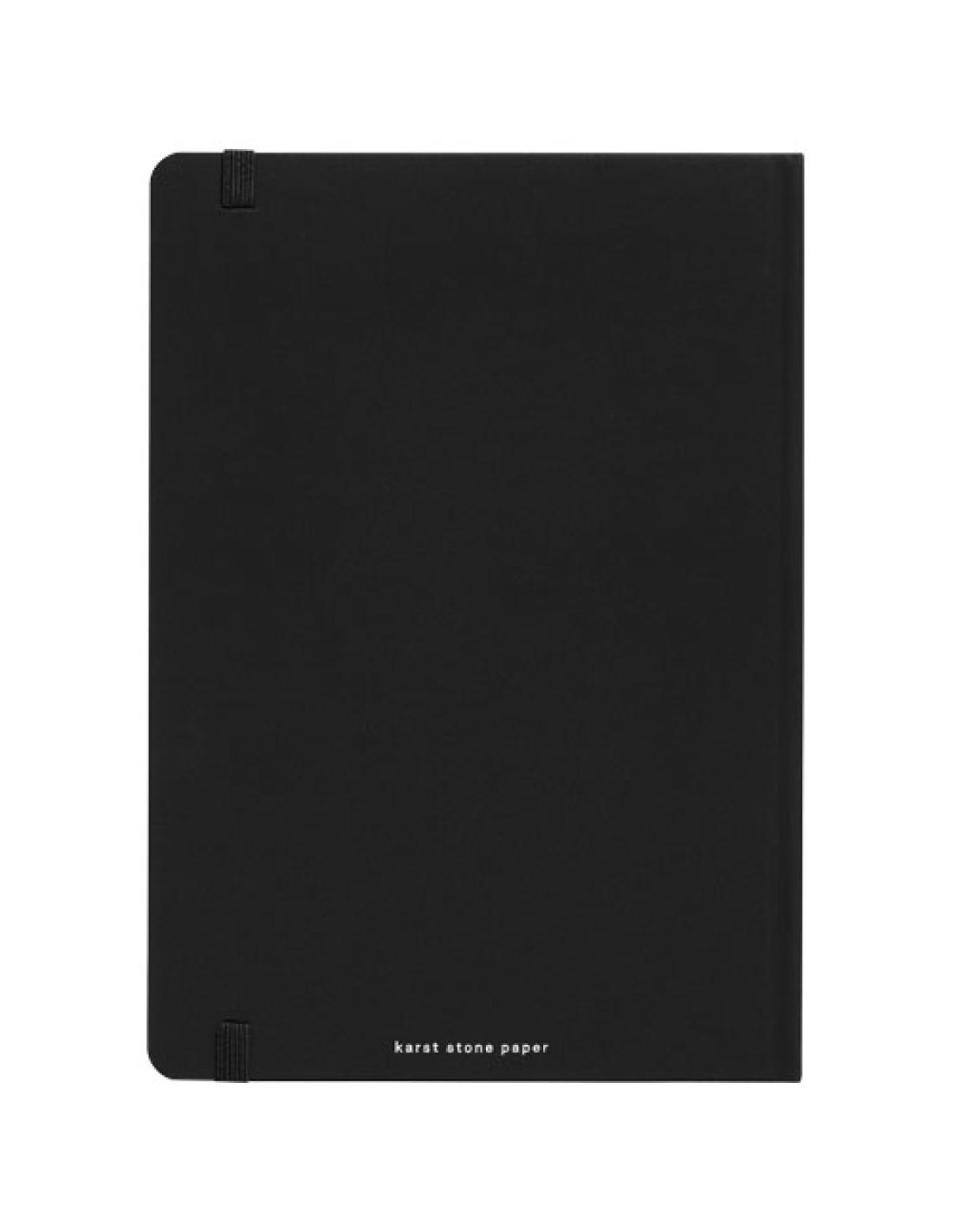 La libreta de tapa dura A5 "Karst®" es un éxito de ventas y a la gente le encanta. La textura suave de las páginas y la encuadernación plana proporcionan un gran confort y espacio de escritura para tus notas e ideas. Cuenta con una banda elástica para mantener la libreta cerrada, 144 páginas rayadas impermeables y resistentes a desgarros, un bolsillo trasero expandible para guardar cosas y una cinta divisoria con punta termosellada y esquinas redondeadas.