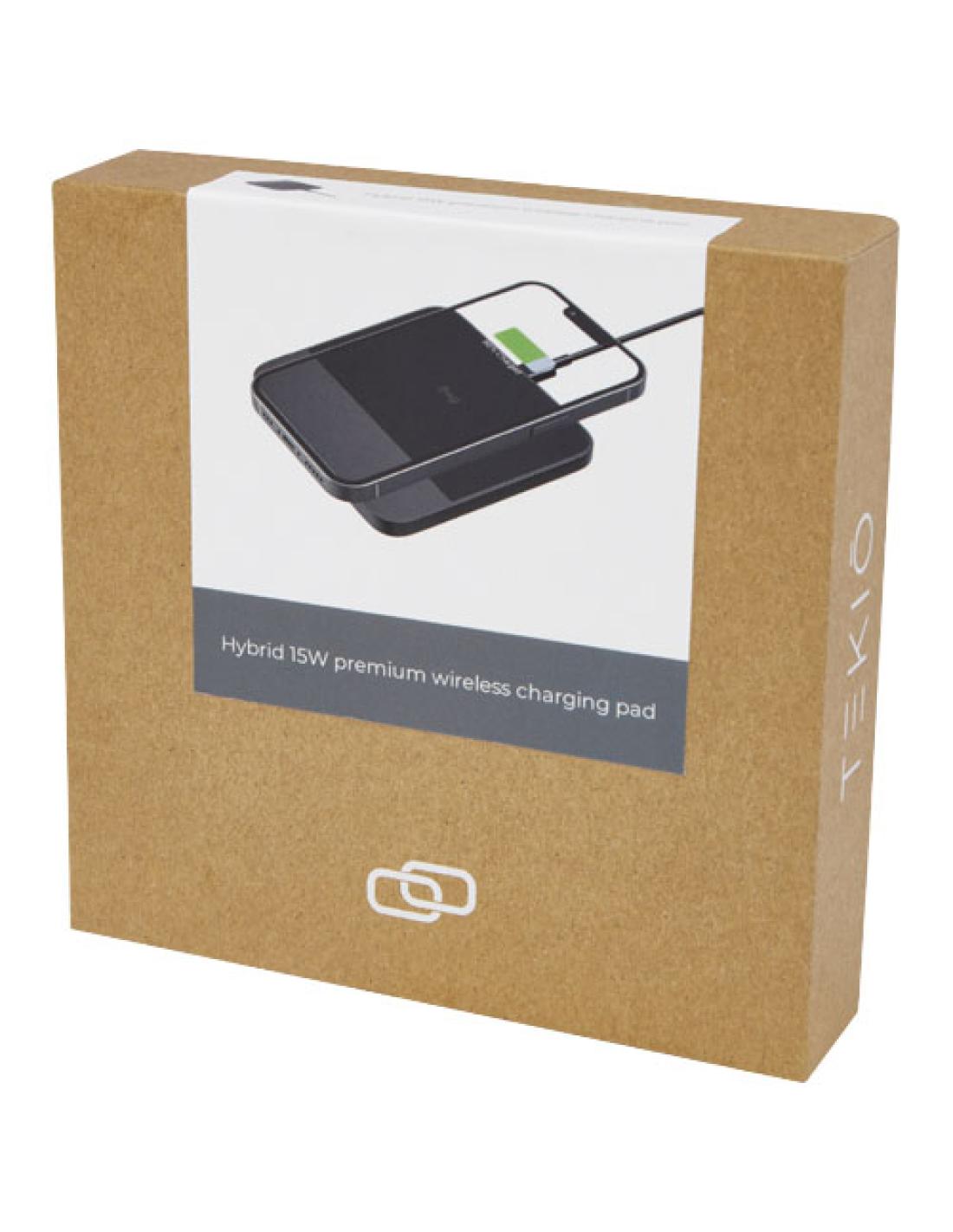 La base de carga inalámbrica de primera calidad "Hybrid" de 15 W es un gran accesorio para cualquier escritorio de oficina. Gracias a su diseño ultrafino, cabe fácilmente en cualquier compartimento de una funda de portátil. Está fabricada con una resistente carcasa de aluminio combinada con una base de carga de cuero TPU antideslizante. Con una salida de carga inalámbrica de hasta 15 W, los dispositivos se recargan por completo a gran velocidad. Compatible con todos los dispositivos Qi (iPhone 8 o superior y dispositivos Android que admitan carga inalámbrica). Incorpora la característica FOD (Foreign Object Detection) para identificar objetos no deseados y garantizar un proceso de carga sin problemas. Se entrega en una caja de papel kraft de primera calidad con una pegatina de colores. Incluye un cable...
