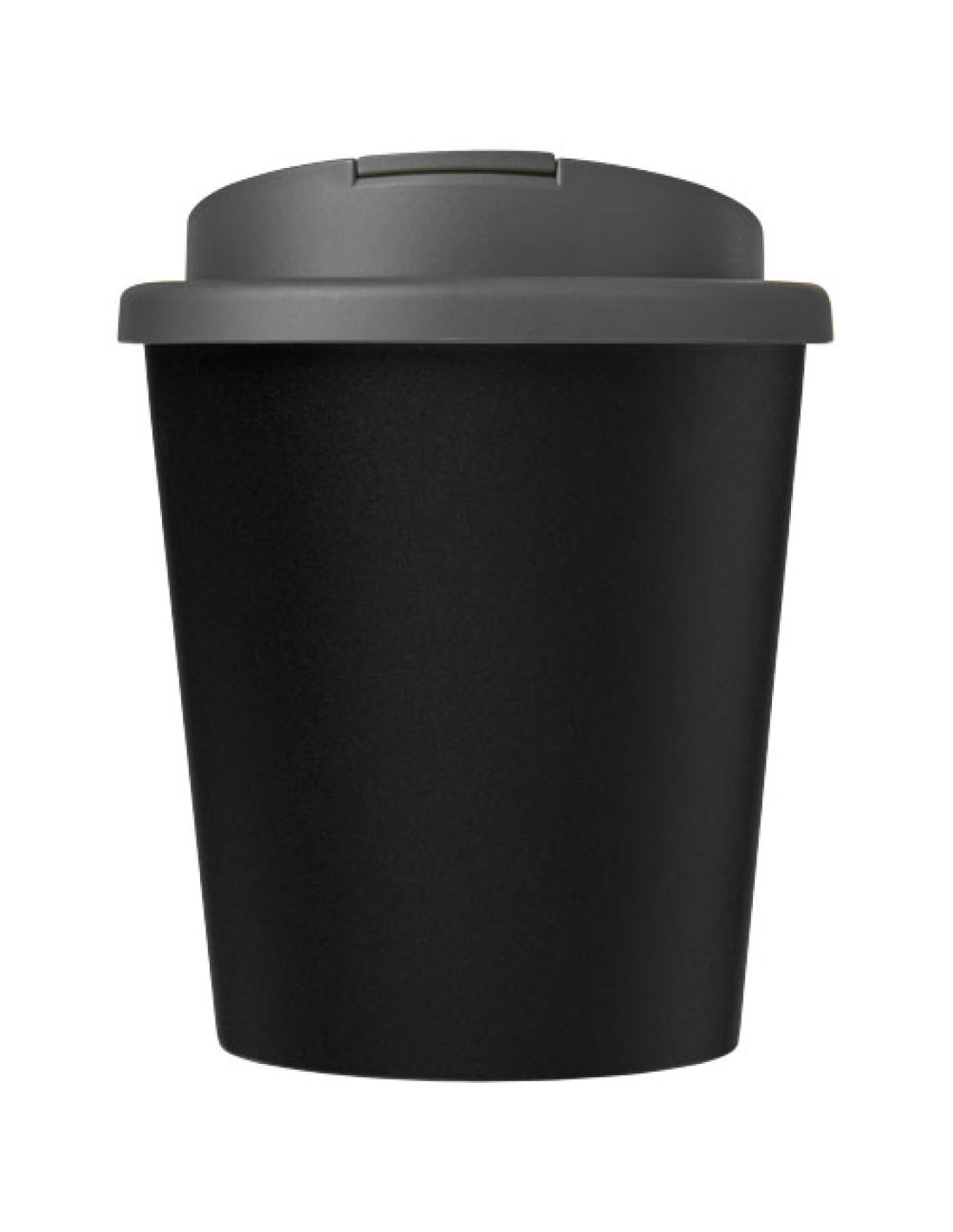 Vaso con aislamiento de doble pared y tapa de rosca segura a prueba de derrames. Los clips de la tapa se cierran para evitar derrames, y están fabricados sin silicona para que el vaso sea totalmente reciclable. El vaso está hecho de plástico de polipropileno 75 % reciclado, mientras que la tapa está hecha de plástico PP de grado alimenticio. Los tonos de negro pueden variar de color de textura por la naturaleza del material reciclado. Cumple con la norma EN12875-1, es apto para el lavavajillas y el microondas. Suministrado en una bolsa compostable para el hogar. Fabricado en el Reino Unido.